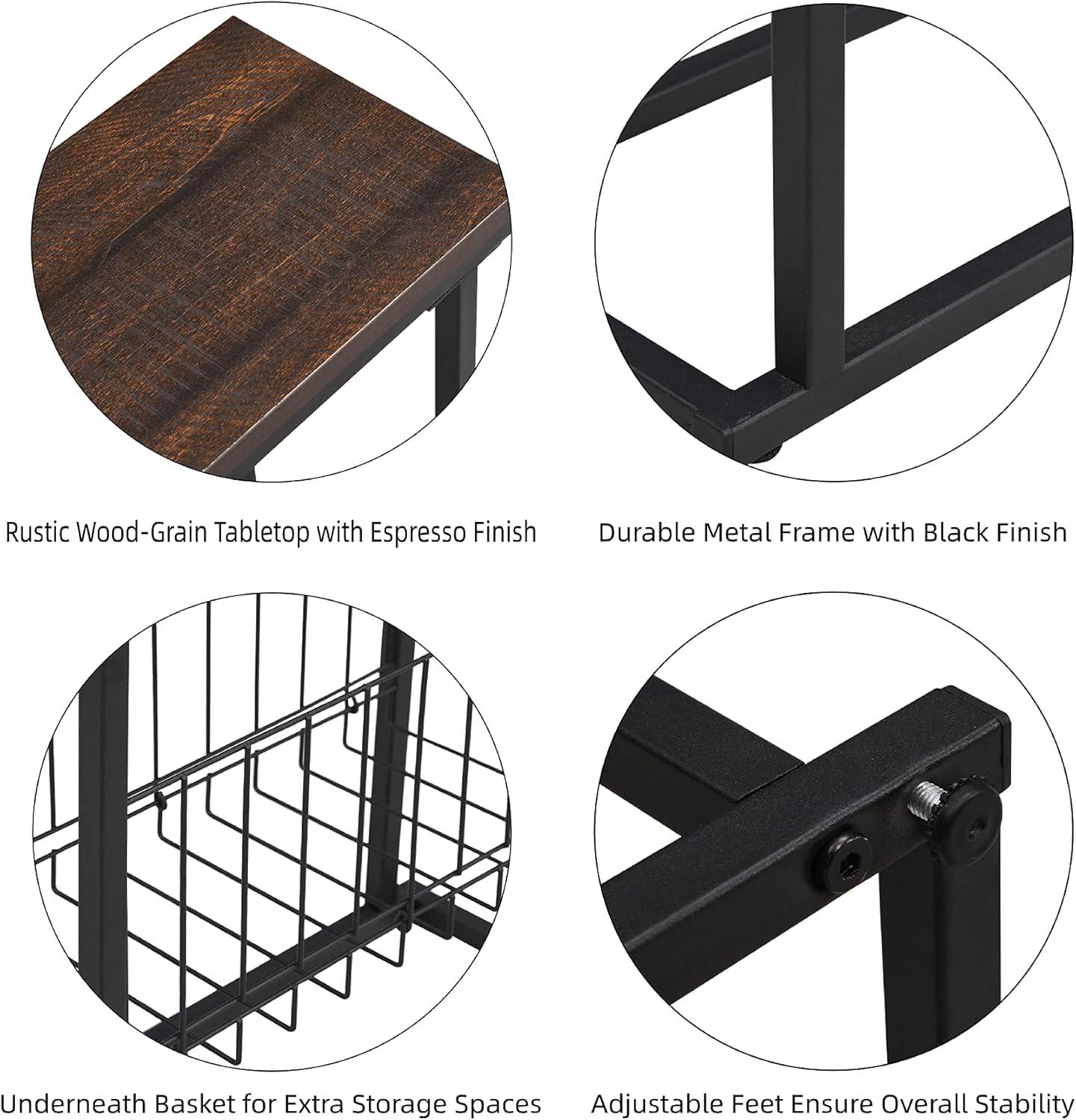 Besides fitting into small spots, this table is ideal for those who appreciate integrated storage without sacrificing design. The built-in magazine basket keeps reading materials or everyday items neatly organized, while the sturdy metal frame paired with the rustic espresso tabletop blends effortlessly into industrial or modern decor.Assembly is straightforward, taking just about 15 minutes with no extra tools required, making it a user-kind option for anyone looking to upgrade their space on a budget.
