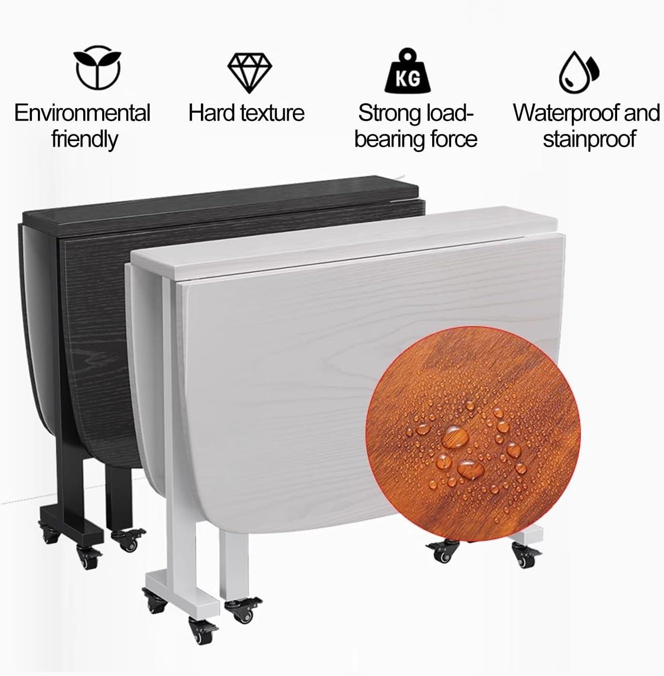 Equipped with six smooth-rolling wheels-each with a lock mechanism-the table moves effortlessly, making repositioning within rooms or between spaces a breeze. this flexibility means no more straining to rearrange furniture or sacrificing precious floor space. The rounded edges and seamless finish not only add safety but also contribute to a sleek, refined look that complements any décor. Whether used as a dining table, workspace, or side table, its adaptability is enhanced by the simplicity of folding and rolling, truly maximizing our living area without compromising on style or function.