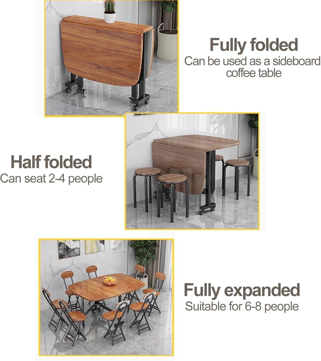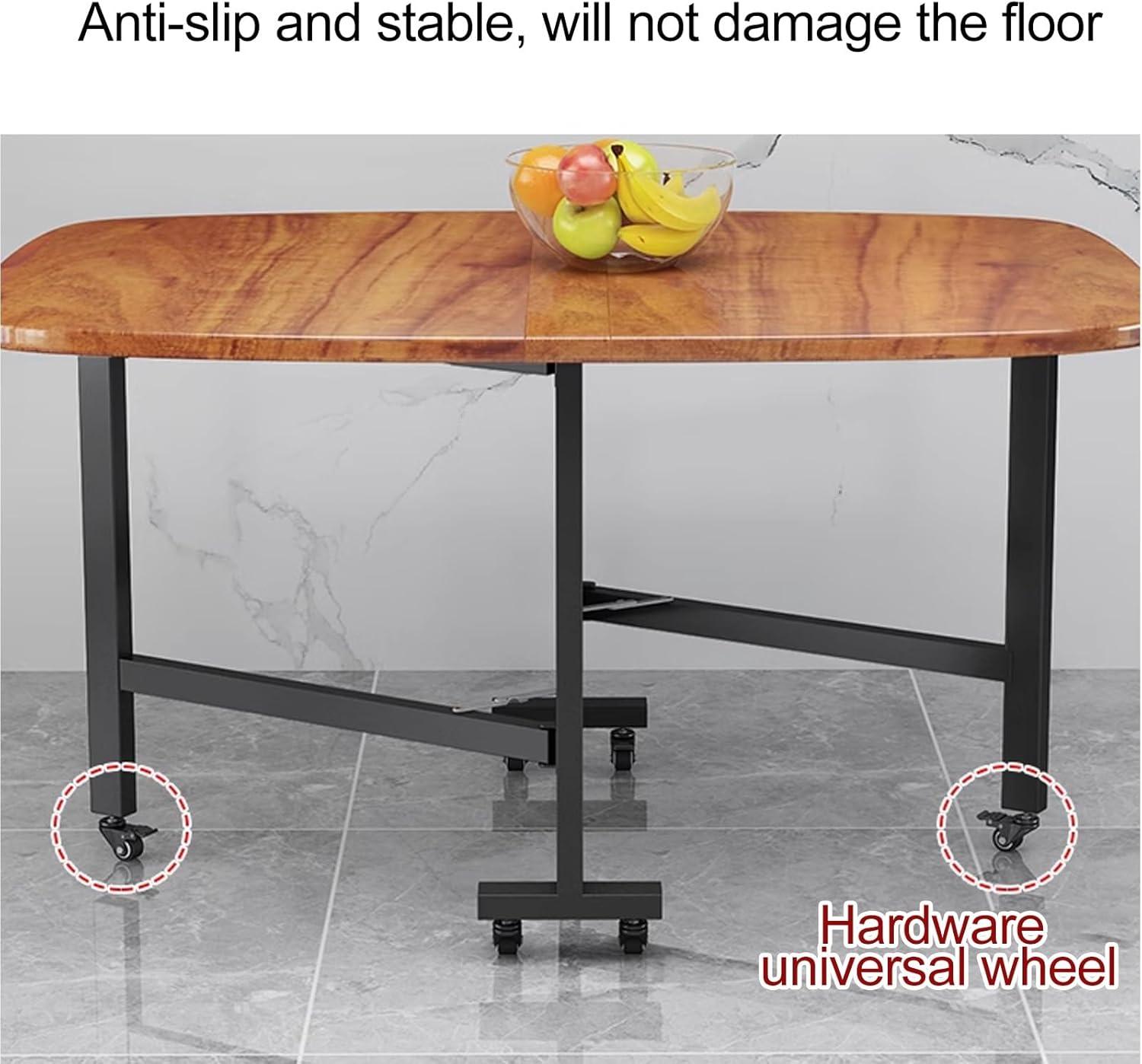 In our home, this foldable dining table fits perfectly with our dynamic lifestyle and limited space. Its adjustable leaf design allows us to quickly switch between a cozy side table for two and a spacious dining area accommodating up to eight people.Moving it around is effortless thanks to the six sturdy wheels-each equipped with brakes-which glide smoothly across floors yet lock firmly when needed. The rounded corners and smooth edges provide added safety, a thoughtful touch for our young children. Cleaning is hassle-free due to the waterproof and wear-resistant tabletop, so occasional spills are no longer a worry.