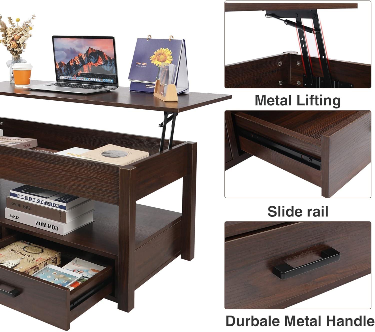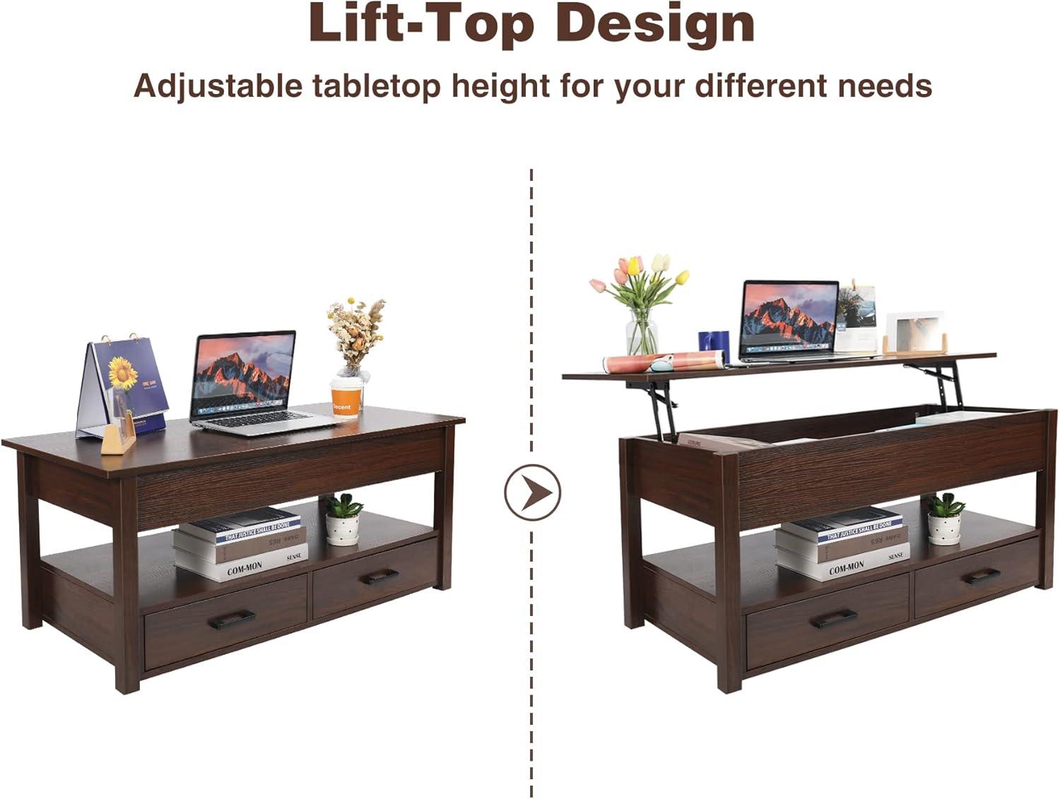This 41.7-inch lift top coffee table brings a clever blend of ⁢functionality and style to our living space. Featuring⁤ a smooth hydraulic lift mechanism, its wooden tabletop elevates effortlessly, creating a⁢ convenient raised surface ideal for working, dining, or casual lounging right from the sofa. The adjustable height ranges from 18.3 inches to 23.8 inches, providing personalized‌ comfort tailored to our needs. Crafted from solid ⁤materials and sturdy particle board, it supports up to 220 pounds, ensuring durability and stability while ⁣maintaining an elegant espresso ​finish that complements ⁤various interior⁤ décors.