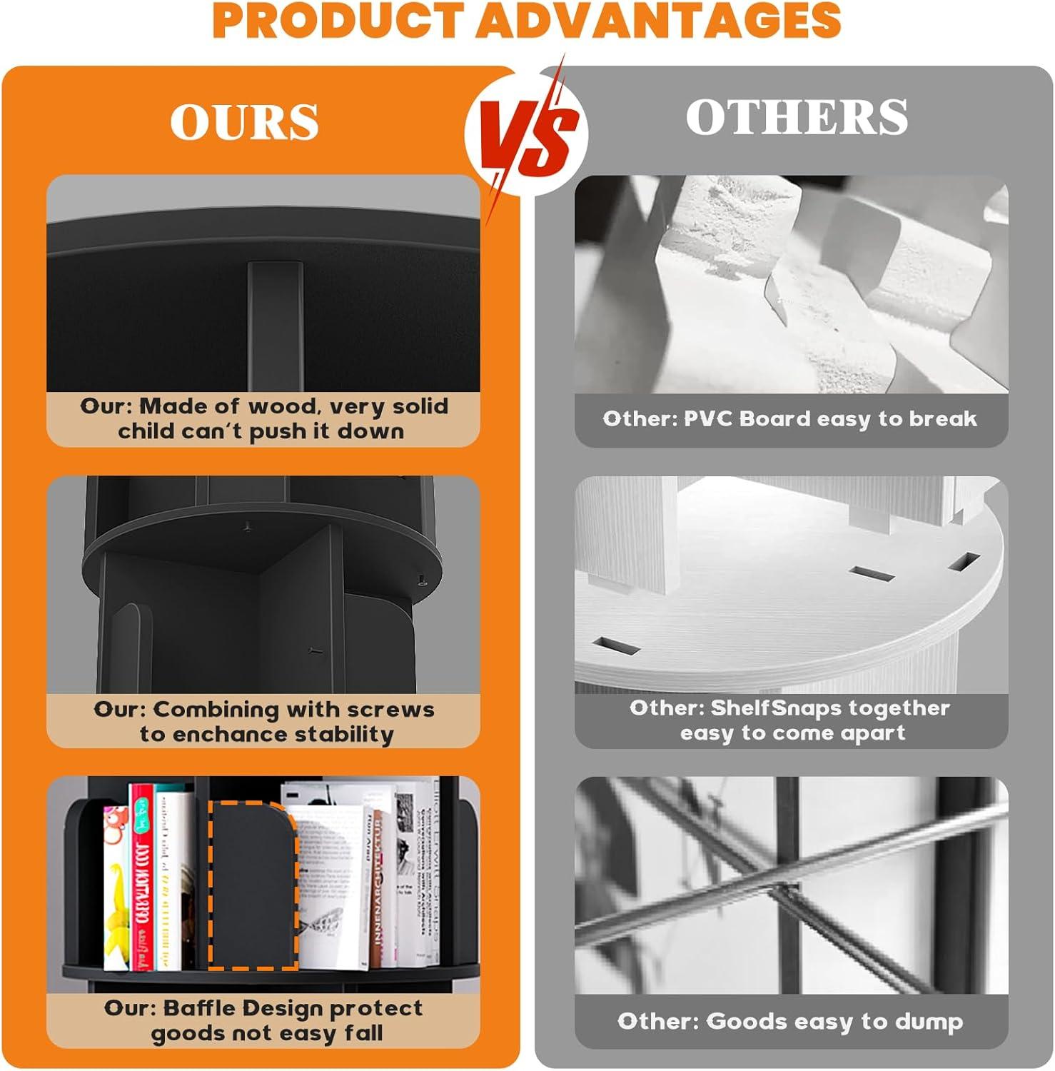 From day one,the stability of this⁢ rotating bookshelf impressed us. Crafted with high-quality E1 MDF board and reinforced metal screws, it stands firm without any wobble or tilt,⁤ even as⁣ we spin it fully​ around. Despite its vertical, tall design, ​the bookshelf feels solid ‌and secure, making ‍daily use worry-free. The 360° rotation‍ is smooth and steady, allowing us to access any⁤ corner of the shelves effortlessly, without fearing that it might tip over or shake. This reliability is⁤ especially appreciated in our busy⁤ home where kids ​and ‌adults alike often reach⁣ for books ‍or decorative items stored here.