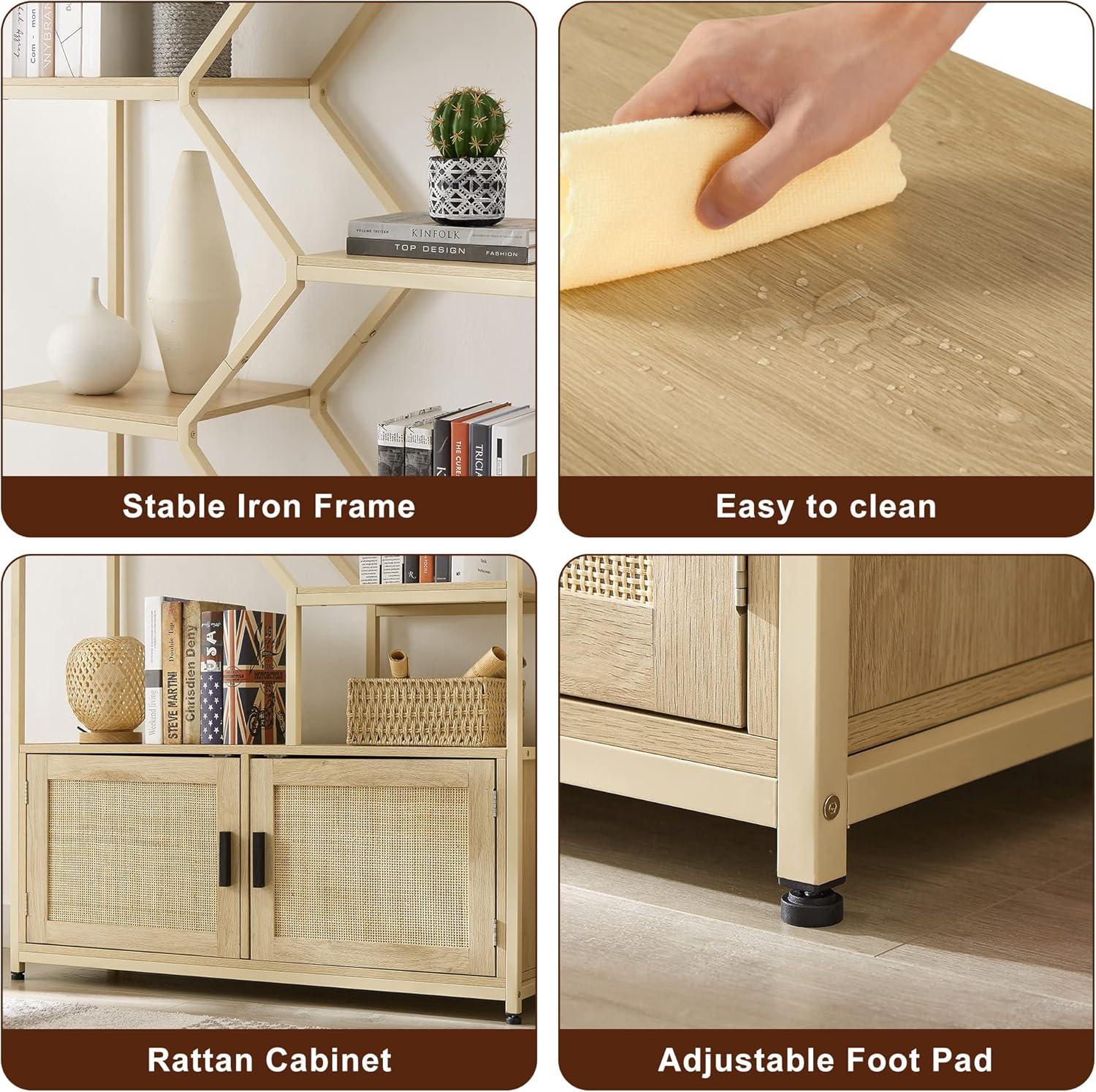 When it comes to blending aesthetic appeal with practical storage, the Natural Rattan 7-Tier Bookshelf with Cabinet immediately caught our attention.Over the past few weeks of using this piece in our living room and home office, we’ve come to appreciate how its bohemian charm and natural rattan elements add warmth and character to any space. With seven open shelves and a spacious cabinet tucked neatly at the bottom, it’s designed to accommodate everything from books and plants to keepsakes and kitchen gadgets. Beyond its inviting look, the sturdy metal frame and eco-pleasant laminated wood make it a durable, space-saving solution. In this review, we’ll share our firsthand experience with its functionality, ease of assembly, and how well it keeps our rooms organized without compromising style.