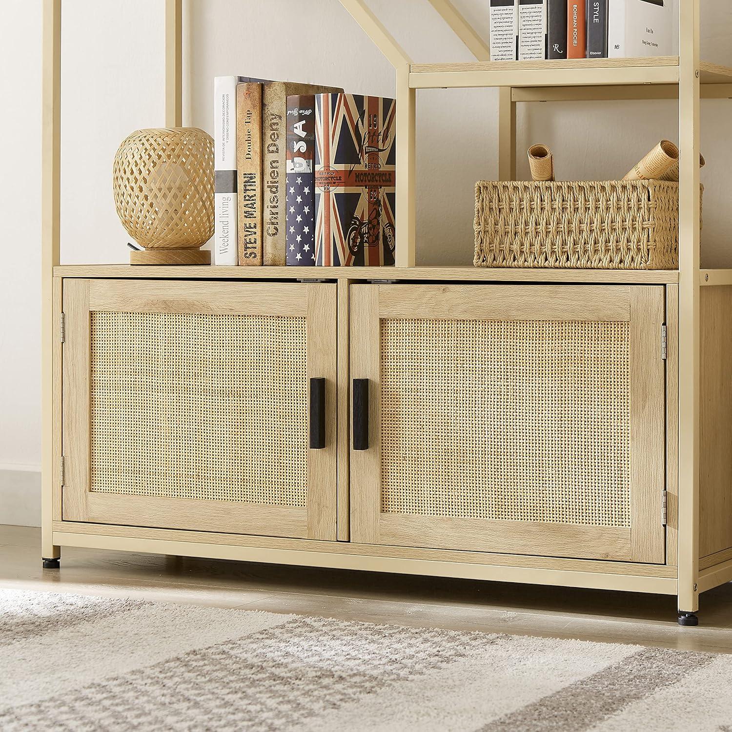 We were immediately drawn to the harmonious blend of natural materials and sleek design elements. The incorporation of genuine rattan at the cabinet base infuses this piece with an earthy, bohemian charm that’s both inviting and warm. Complemented by the natural-toned laminated wood and a sturdy metal frame, the bookshelf exudes an understated elegance that fits seamlessly into various interior styles-from cozy living rooms to modern home offices. beyond aesthetics, the thoughtful addition of adjustable foot pads not only protects your floors from scratches but also ensures stability on uneven surfaces, demonstrating attention to detail that we truly appreciate.