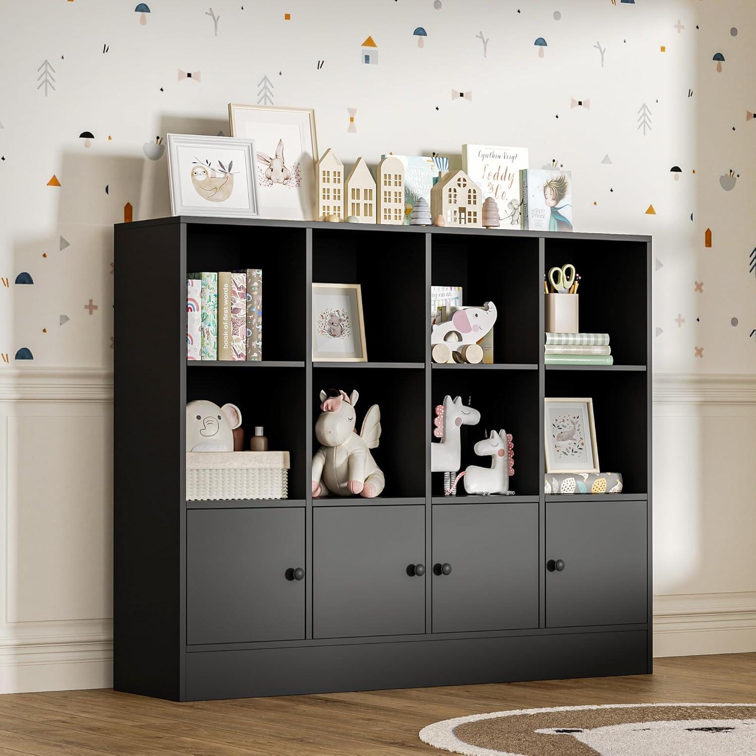 Maximizing storage while maintaining a clutter-free habitat is effortless with this versatile bookshelf. The combination of 8 open shelves and 4 cubby doors allows us to categorize and conceal items neatly, giving our rooms a visually balanced look. Whether it’s books, toys, or decorative pieces, each item finds a dedicated spot without overcrowding the space. Its compact design fits well even in modestly sized bedrooms or living areas,making it an ideal choice for families with children and adults alike.