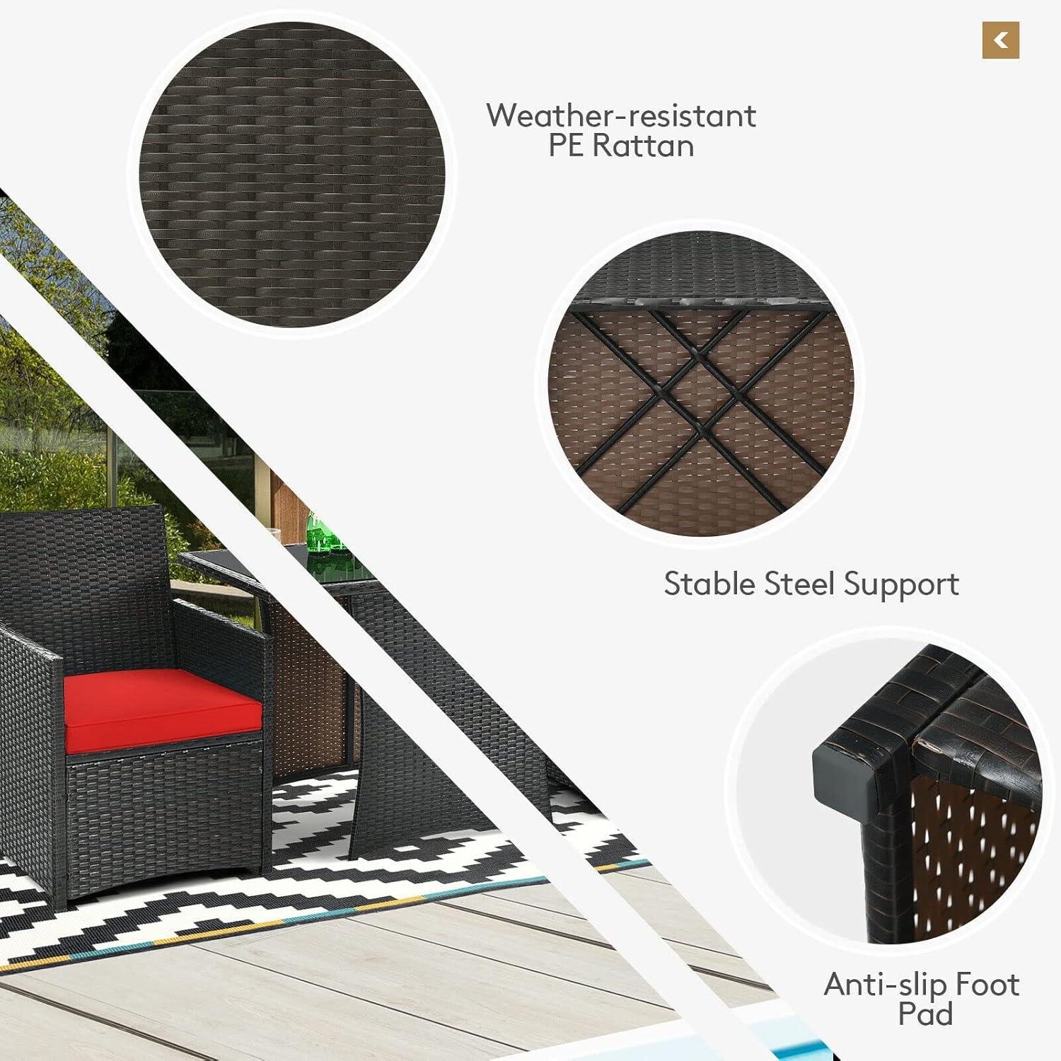 Practical features such as the anti-slip foot pads bring added stability on garden decks or balconies,complementing the set’s overall robust construction. The red cushions introduce a bright splash of color that livens up any patio space, while the mixed brown rattan base blends well with natural surroundings. Assembly was straightforward thanks to detailed instructions, making setup hassle-free. Here’s a quick snapshot of the key specifications: