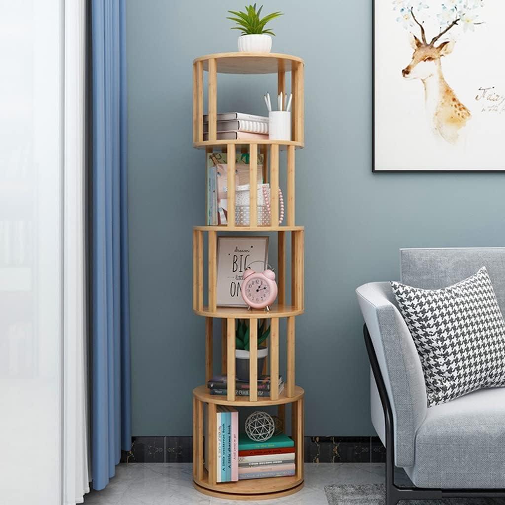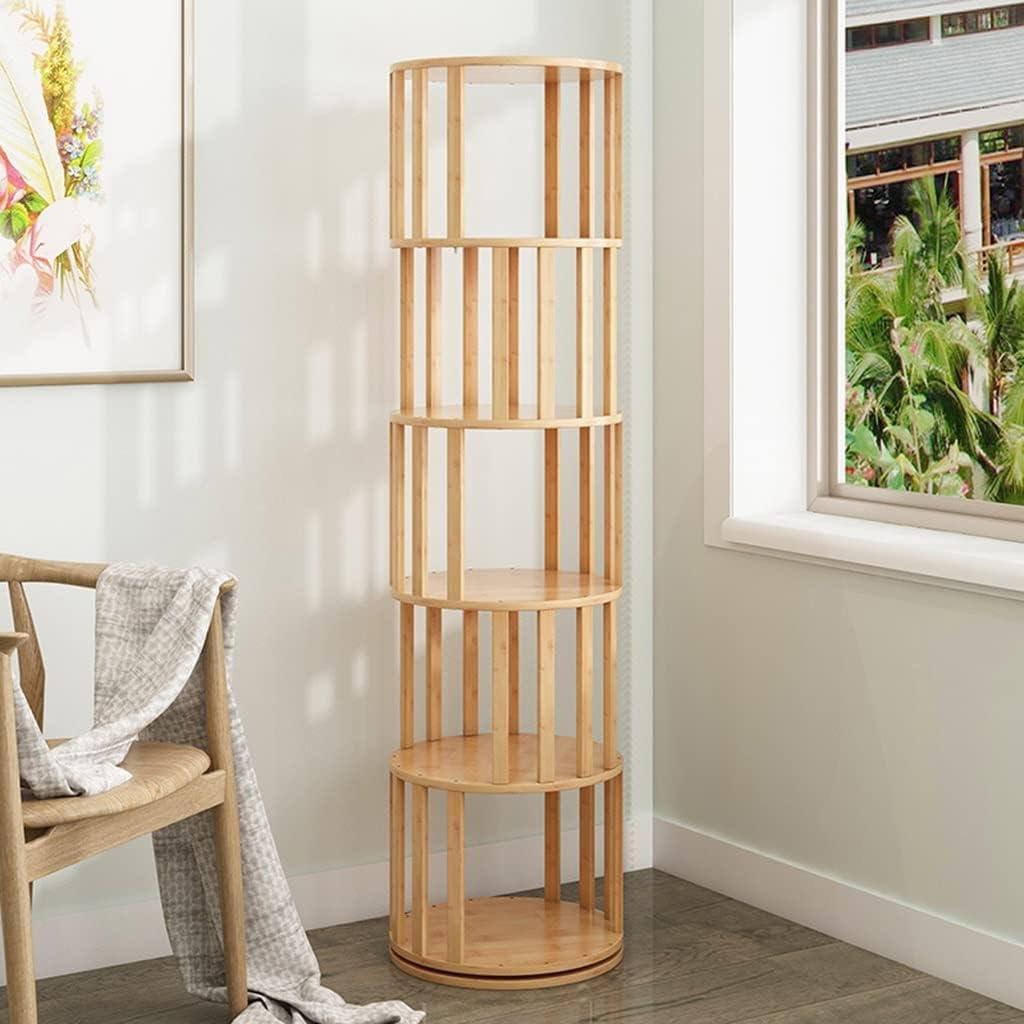 We have found this rotating storage rack to be incredibly adaptable across various rooms and uses. Its calm, retro aesthetic with warm bamboo tones blends effortlessly, whether placed in a living room corner to display potted plants and cherished mementos, or in a study as an organized hub for books and journals. The 360° rotation adds exceptional ease, allowing us to access items without needing extra space to walk around, making it perfect for tighter spots like bedrooms or home offices.The five-tier design provides ample room for everything from toys and magazines to decorative models, ensuring both function and style coexist beautifully.
