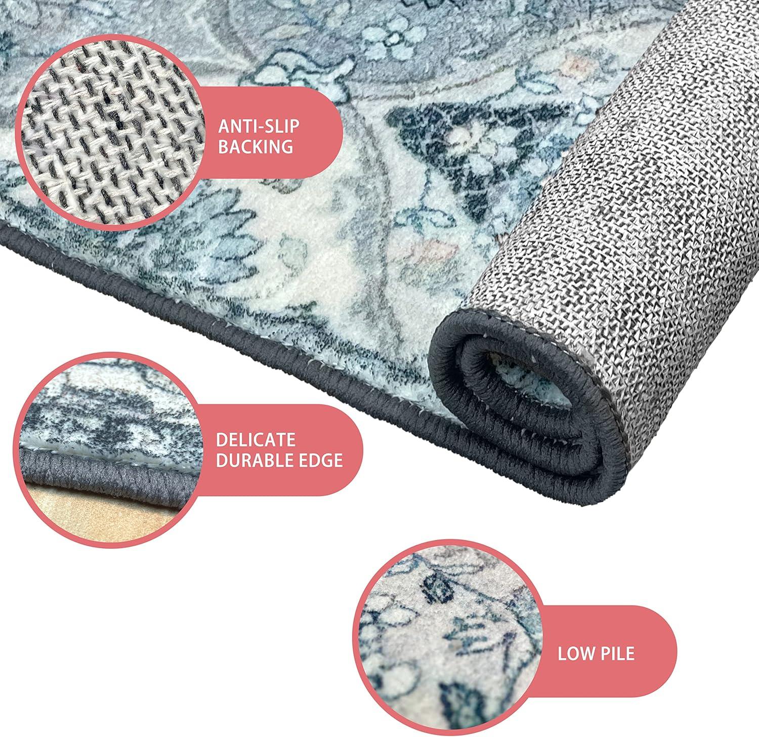 | Low pile design prevents tripping hazards and fits easily under doors | Machine washing requires some care to maintain the vintage colors over time |