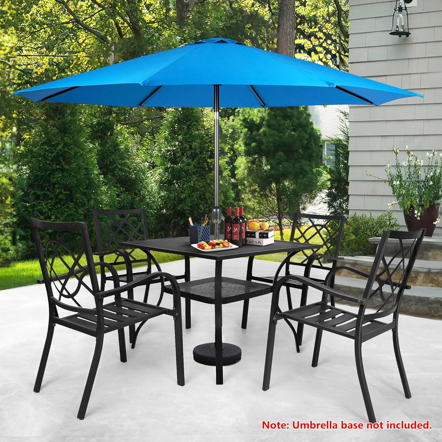Sunlight sifts through ​the umbrella,⁢ casting a pale blue ⁤wash across the metal tabletop and softening the edges of everything it touches. You notice the Incbruce 5-piece outdoor dining set—its‍ square table and four gently curved chairs reading as‍ an everyday cluster rather than a staged display. brushing ⁤a hand over the tabletop, you feel the cool, slightly ⁢textured metal and the faint⁣ ridges of the slats; the chair backs have a subtle curve that settles against yoru spine more than it asserts itself. ⁤In scale it feels modest but roomy, the painted finish catching flecks of light and the ⁣occasional tiny scuff that marks real use.