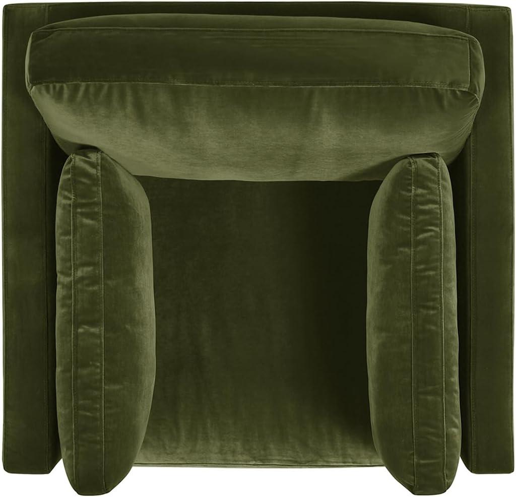 You’ll notice the upholstery first: a polyester velvet with a short, soft nap that responds to a fingertip. It feels plush without being sugary — a gentle, almost suede-like give when you press it, and it warms quickly to skin. The pile shifts with your hand, so smoothing the arms or back tends to leave a faint change in direction that you can feel more than see.