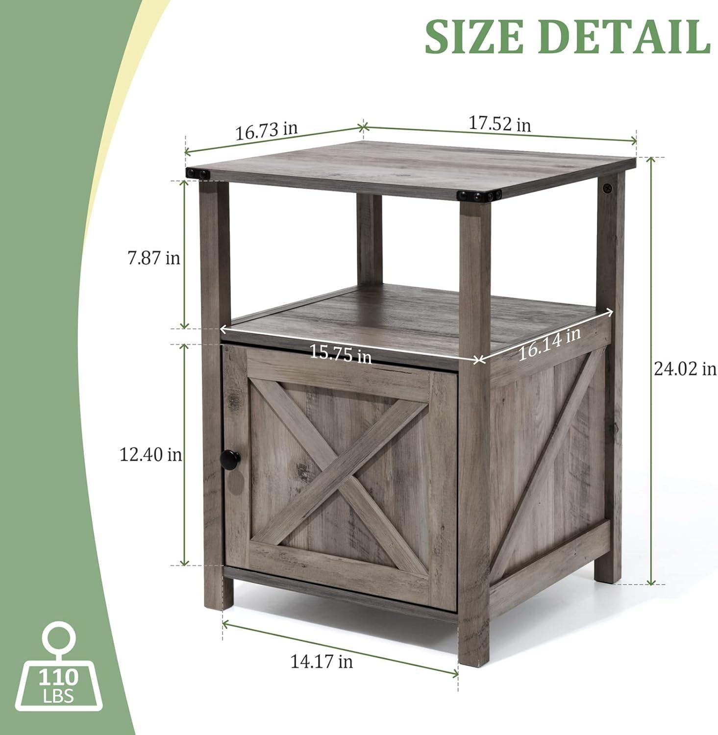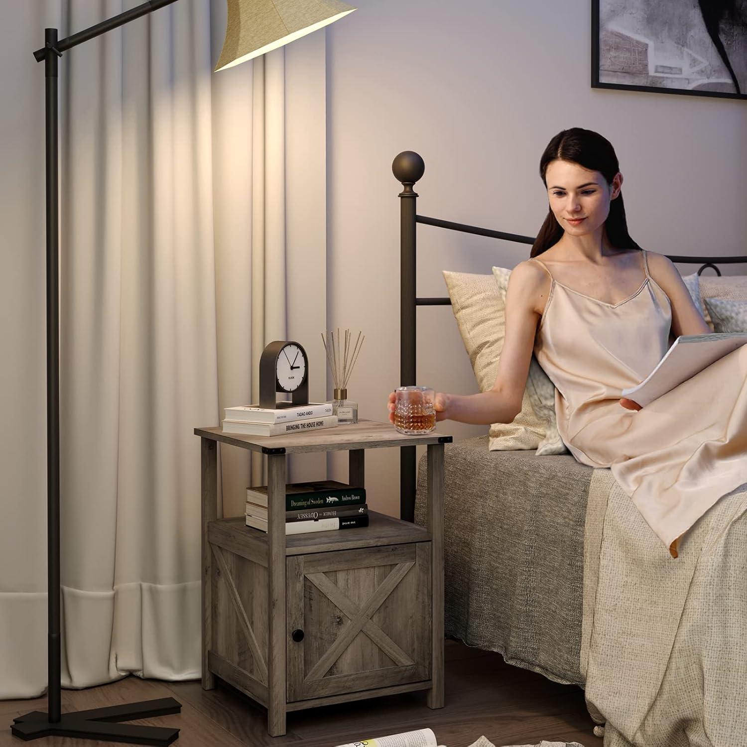 Over time the Farmhouse Nightstand Bedroom, End Table with Barn Door and Shelf, Wooden Side Table for Living Room, Office, Bedroom settles into your room’s rhythms rather than announcing itself. in daily routines you find the shelf collecting the slow accumulation of small things, the top holding the cup that cools beside your lamp, and the barn door moving with a familiar, unforced comfort. Its surface takes on the light dings and soft polish of regular handling, small marks that map ordinary days as the room is used. Quietly present in regular household rhythms, it simply stays.