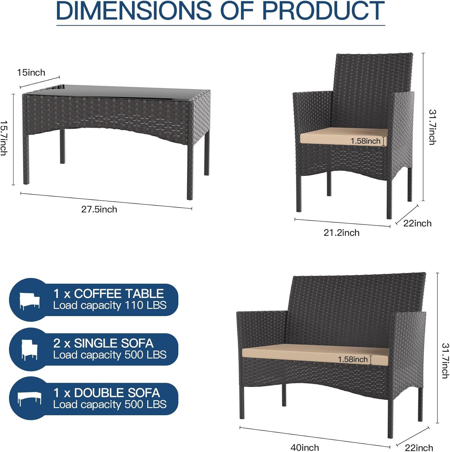 | ✔ Comfort-Focused Design: ergonomic backrests and thick, soft cushions make for long, cozy conversations. | ✘ cushion Maintenance: While covers are removable and splash-proof, frequent washing may be necessary to keep them fresh. |