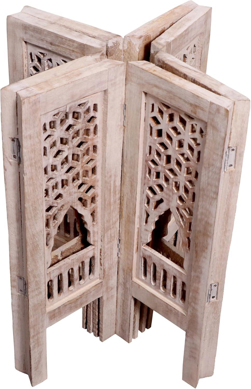 When you peel back the packing, the first thing that meets your eye is the soft, muted wash of the burnt off-white finish — a thin, slightly uneven veil that lets the wood grain and tooling show through in places. Carved lines and shallow motifs reveal themselves as the box light hits them: paint pools gently in the recesses, making the low-relief patterns read darker than the surrounding planes. A faint dusty scent of wood and hand-applied paint lifts up, and a few tiny flecks of finish cling to the protective wrapping you undo.