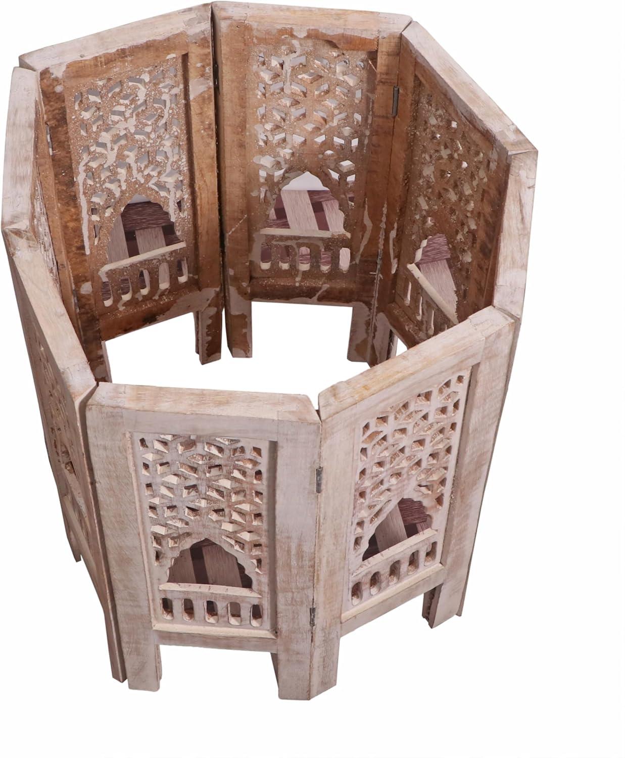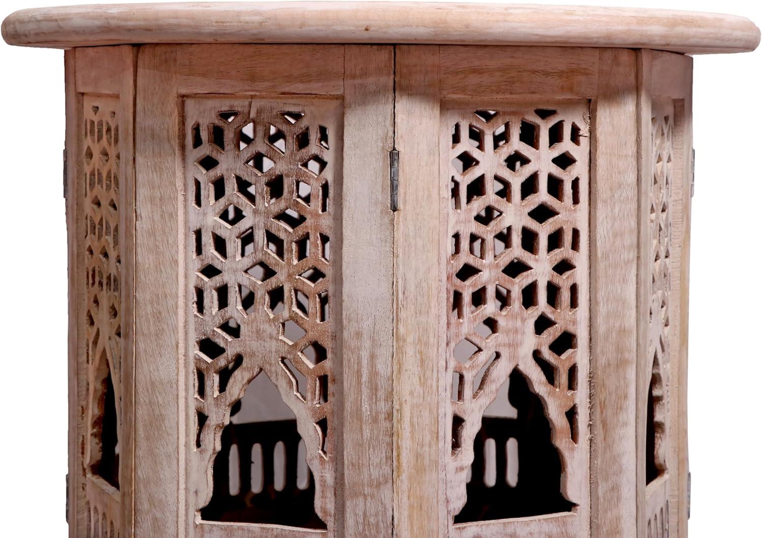 After weeks and then months the LEATHEROOZE Solid Wood Hand Carved Accent Table, Side Table,wooden End Table, bedside octagonal Wooden Table – 12 Inch round Top x 8 Inch High – Burnt (12X8 INCH Octagonal OFFWHITE) settles into a corner or beside the bed as something quietly familiar. it finds small uses — a morning cup, a lamp nudged into place, a book left open — and the surface gathers the soft scuffs and warm polish that come from regular household rhythms. The height and shape invite those habitual gestures, so its presence becomes part of the room’s daily pattern rather than a new arrival. Over time it simply rests, blending into everyday rhythms.