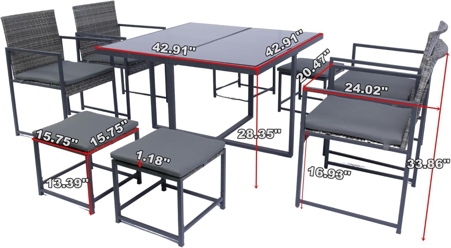 | ✔️ Stylish & Modern: The hand-woven PE rattan in elegant gray complements a variety of outdoor décors. | ❌ Assembly Required: While instructions are clear, setting up the 9-piece requires some time and effort. |