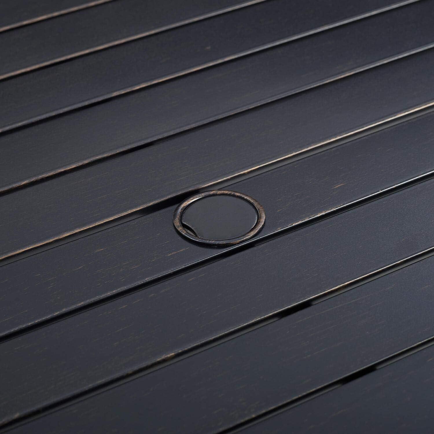Beyond its resilience, the design thoughtfully incorporates practical features such as a standard umbrella hole in the table, seamlessly blending functionality with style. This makes shading your space effortless while preserving the strength and integrity of the metal framework. the build quality strikes a perfect balance between durability and elegance, making it an excellent investment for anyone looking to enhance their patio or garden with a dependable and attractive dining solution.