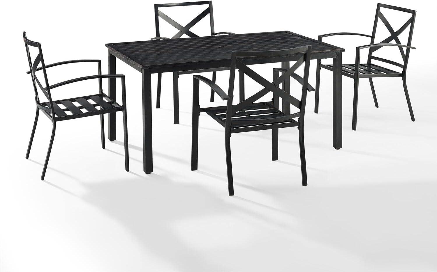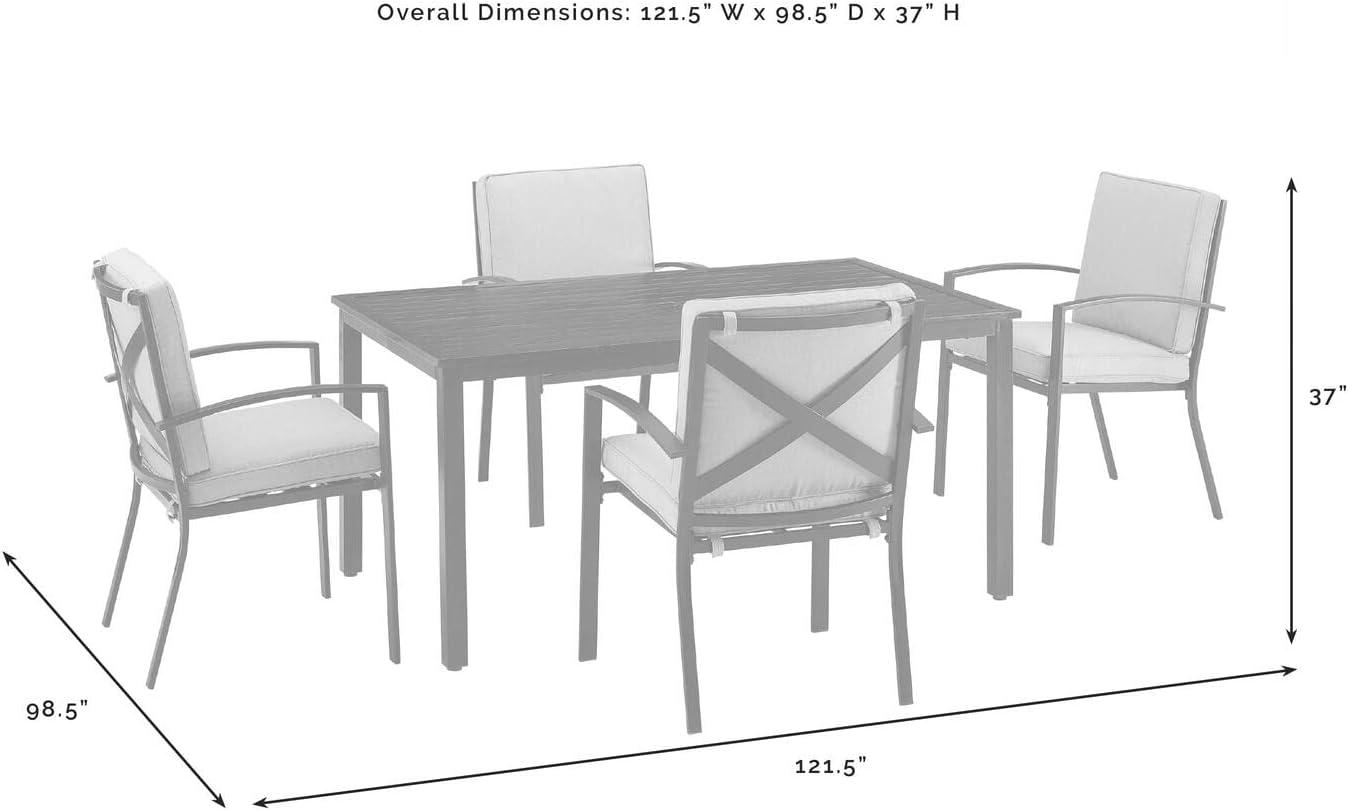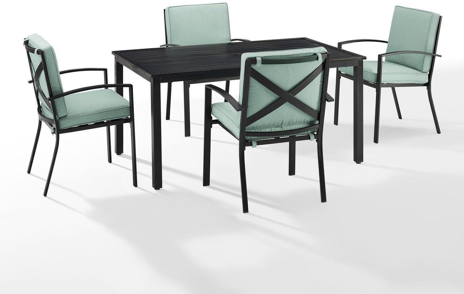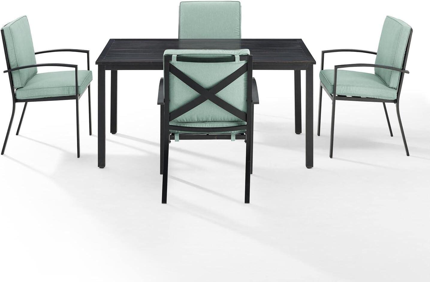 Whether you have a cozy balcony or a spacious garden, this dining set adapts beautifully to a variety of outdoor areas. Its rectangular table shape optimizes space,allowing for efficient placement in tighter nooks without making the area feel cramped. The four chairs slide comfortably under the table, saving room when not in use, which is especially beneficial for smaller patios or decks. The elegant oiled bronze finish paired with mist-colored cushions introduces a subtle sophistication that complements both modern and conventional outdoor decors alike, creating a harmonious ambiance no matter the setting.