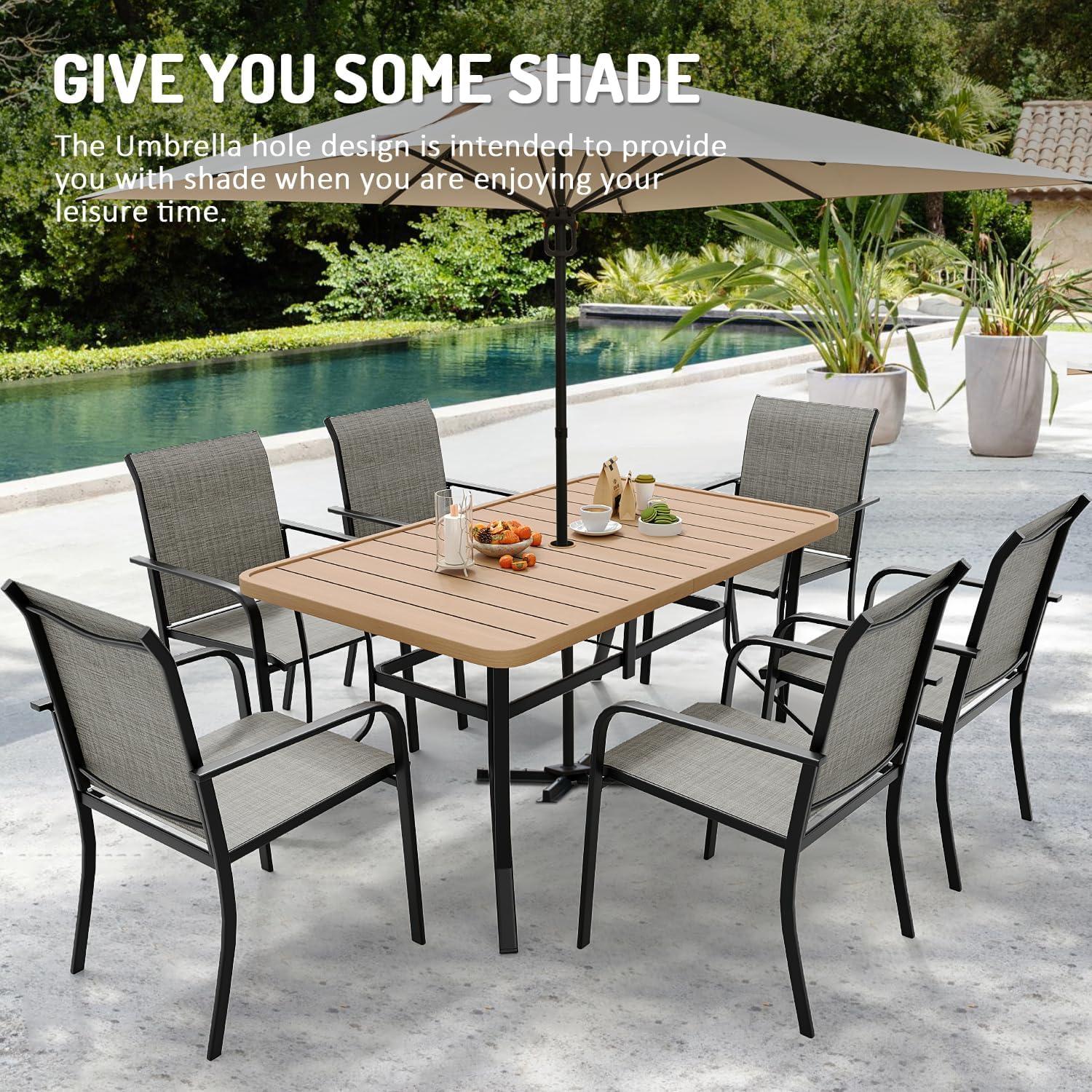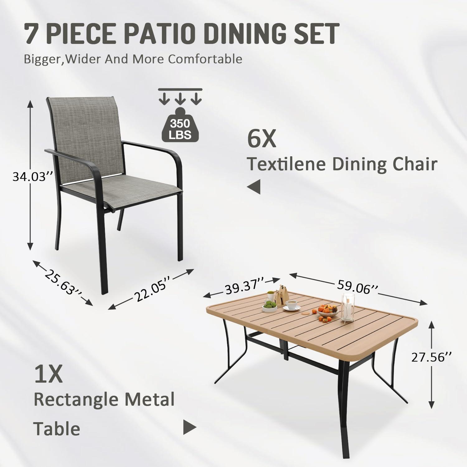 - 【7-Piece Dining Chair Set】This patio dining set contains 1 extended dining table and 6 ergonomic dining chairs. This modern outdoor dining table set features aesthetic appeal that seamlessly blends with various outdoor settings, adding charm and elegance to your patio or garden, which is perfect for your family events.