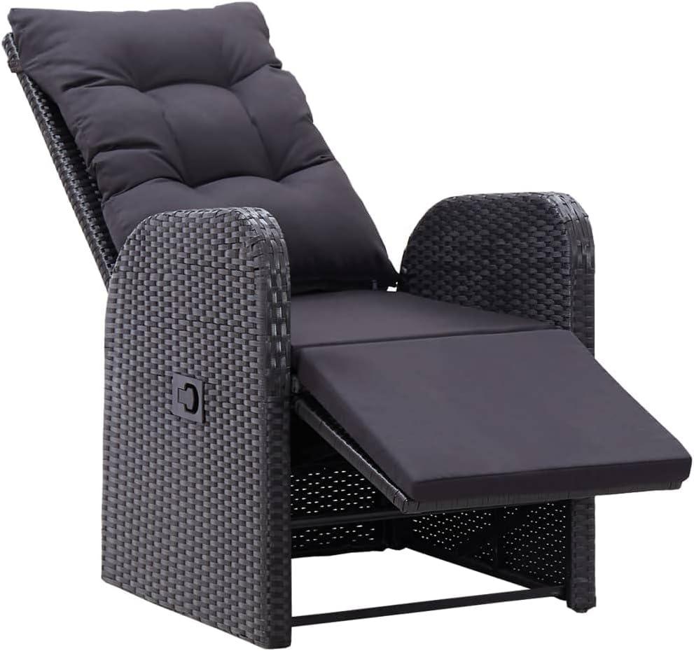 Beyond aesthetics, this set’s thoughtful design further enhances the ambiance. The reclinable armchairs with adjustable backrests and footrests offer ultimate comfort,inviting us to linger longer while soaking in the serene outdoor vibes. Lightweight yet sturdy, the pieces allow us to easily rearrange seating to suit the mood or occasion. Plus,the black cushions,covered in low-maintenance polyester,deliver plush comfort while complementing the dark rattan perfectly,uniting style and function effortlessly.