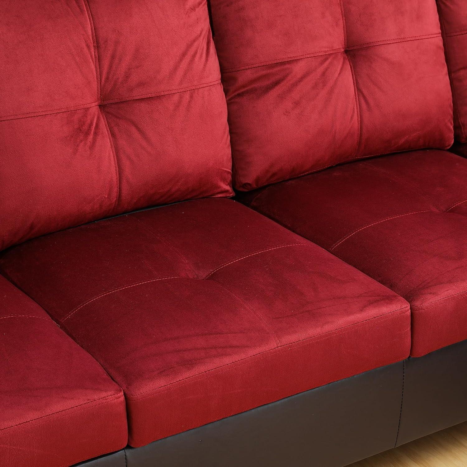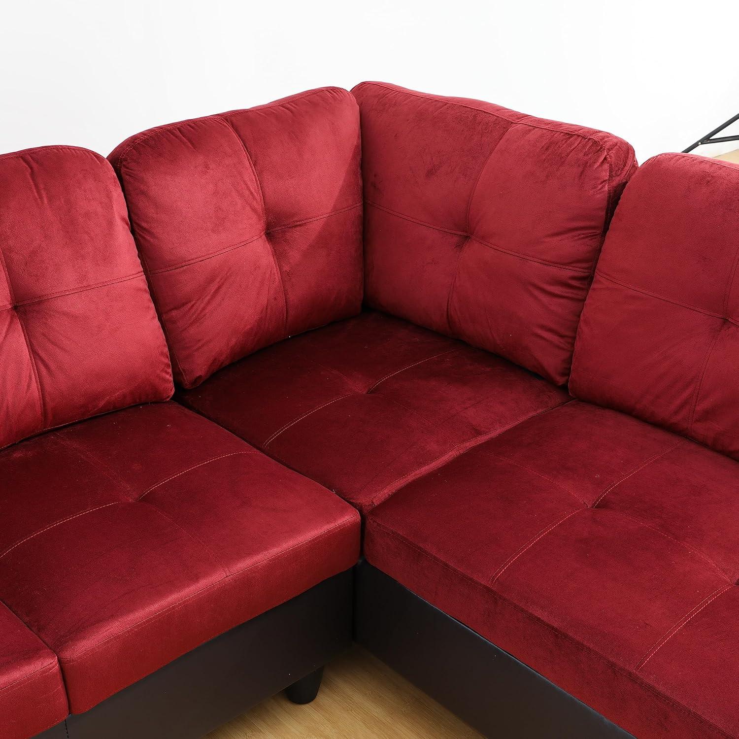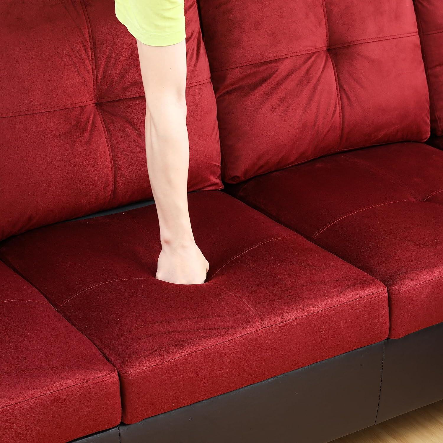 Over time the NicBex L Shaped Couch Sectional Couches for Living Room Morden Sofa Couch Upholstered Futon Sofa Bed with Chaise and Back Cushions for Reception Room and Apartment, Red and Black quietly eases into the room, its profile softened by small habits and the scatter of cushions. You notice how it reshapes corners of the apartment — a place to fold over a throw, to tuck a newspaper, to stretch out in the evening — and how its comfort shifts subtly with regular rhythms of sitting and napping. Surfaces pick up faint impressions where people land, edges darken where arms rest, and the fabric takes on the lived texture of daily routines as the room is used. It stays.