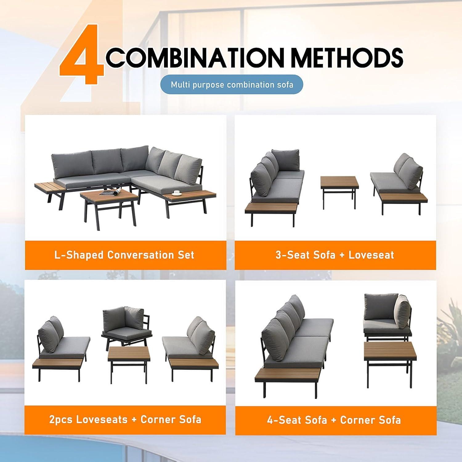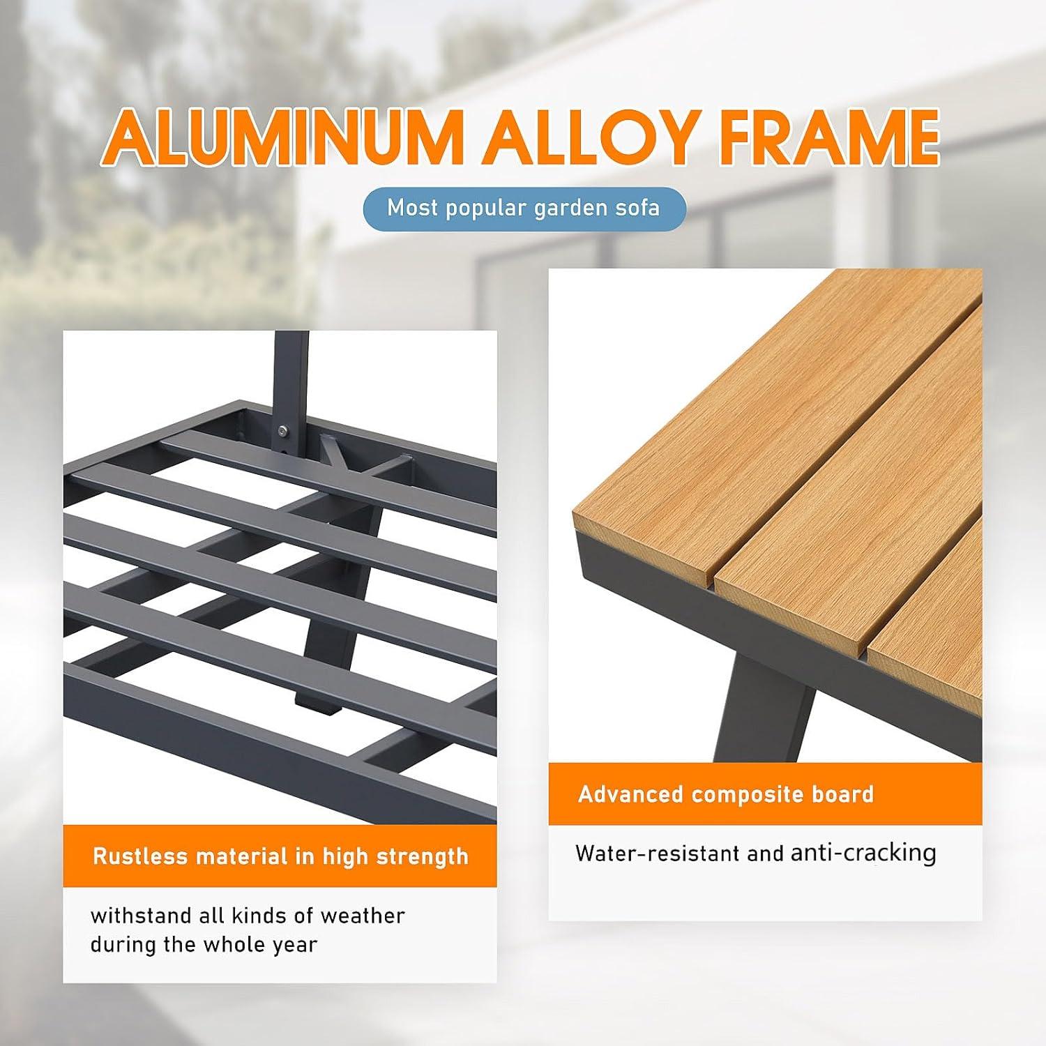 Beyond its strength, the aluminum frame enables versatile configurations that fit various layouts and occasions. Whether arranged as an L-shaped sofa or split into individual components like the loveseat or corner piece, the lightweight yet sturdy frame makes moving and reassembling the furniture hassle-free. This flexibility is enhanced by the inclusion of built-in side tables and a coffee table, all supported by the metal frame that balances style with practicality. below is a quick look at how the aluminum frame adds value to the set: