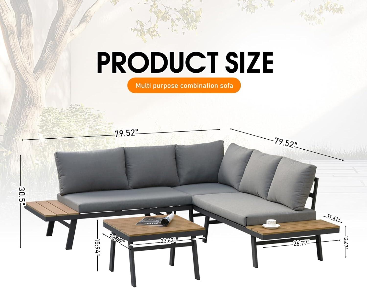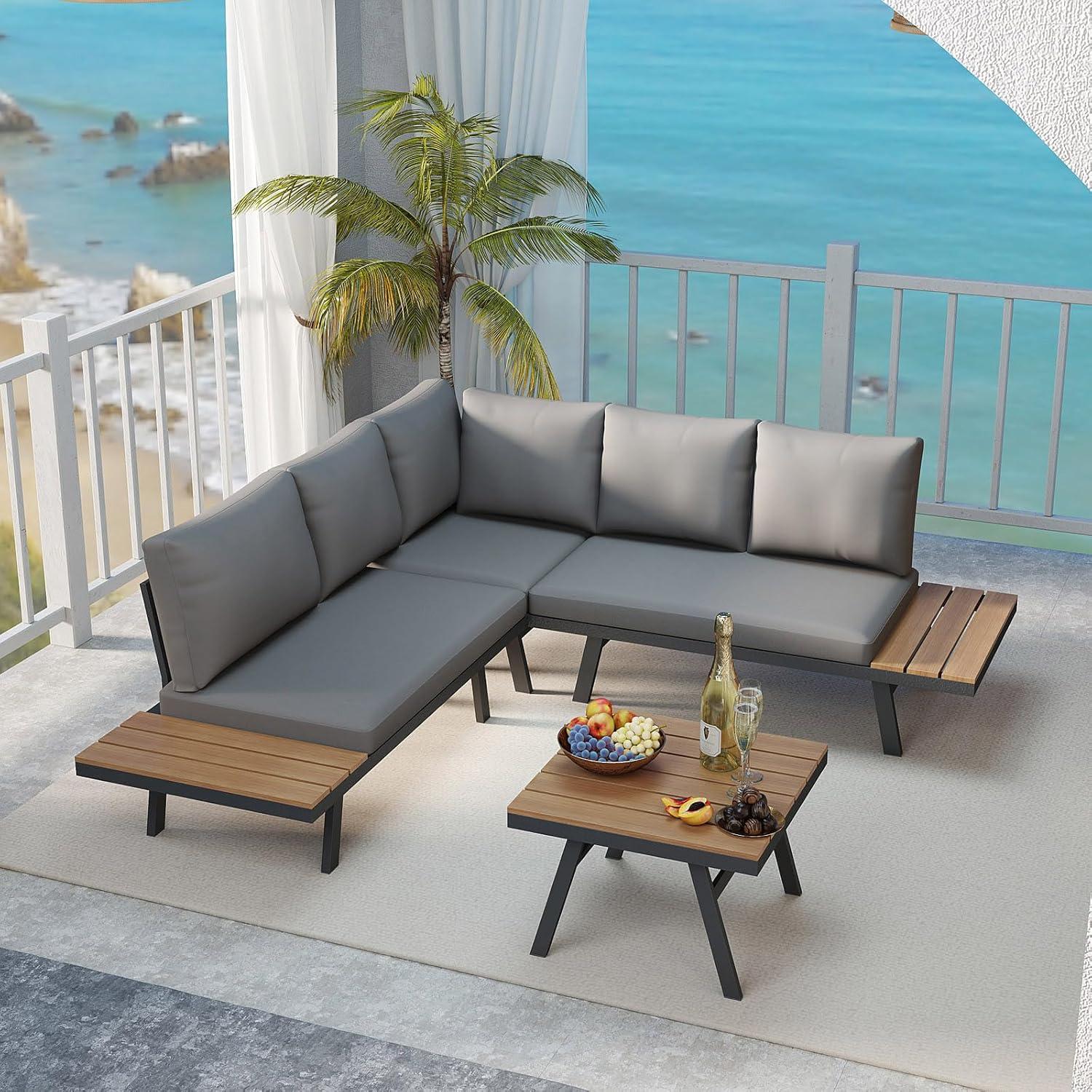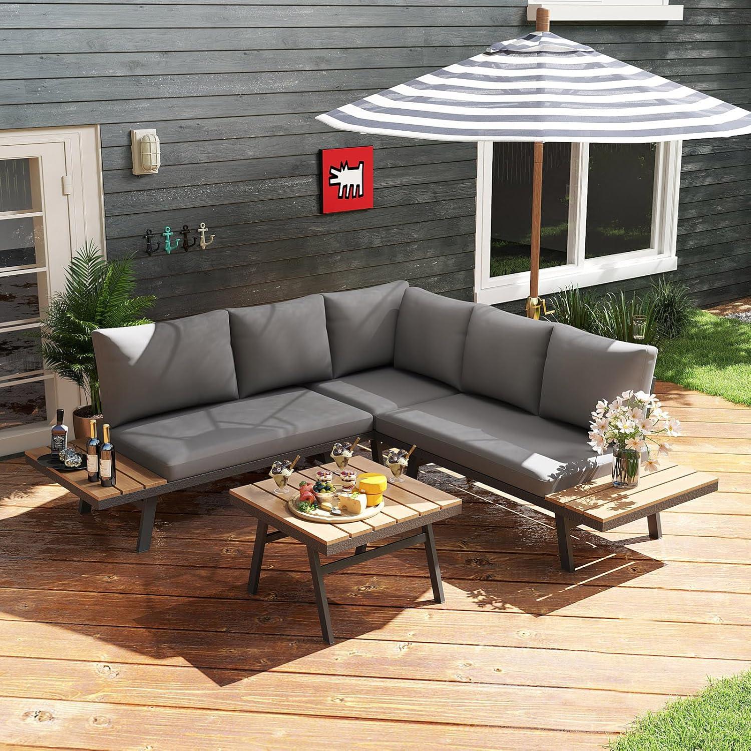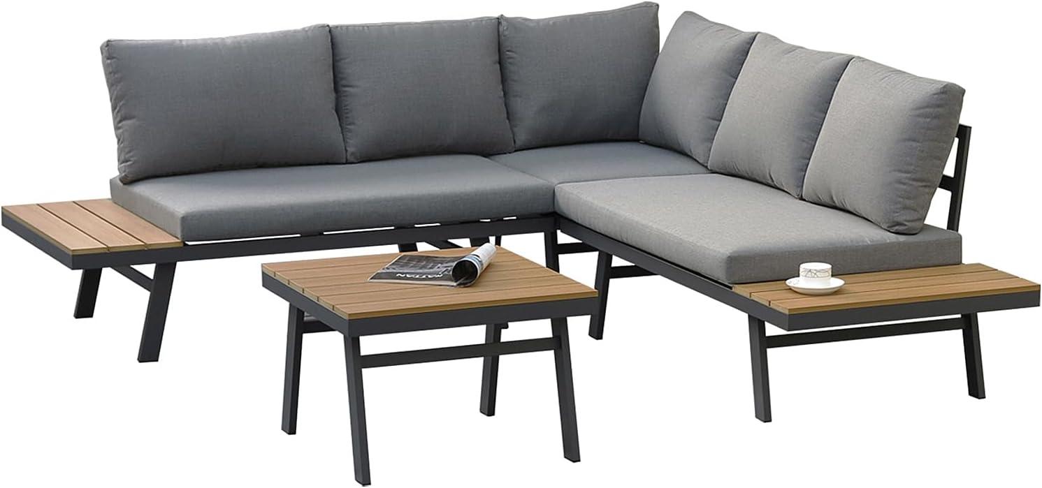 Maximizing space without sacrificing comfort is a tricky balance, but this set delivers impressively on both fronts.The L-shaped design naturally fits into corners, making it an excellent choice for decks, porches, or compact garden spaces.What stands out is the versatility-the sectional can be reconfigured into multiple arrangements like loveseat or corner sofa, adapting easily to different layouts or moods. The inclusion of two built-in side tables and a separate coffee table adds extra practicality, offering convenient spots to place drinks or snacks without crowding the seating area. This thoughtful use of space ensures everyone enjoys comfort without feeling cramped.
