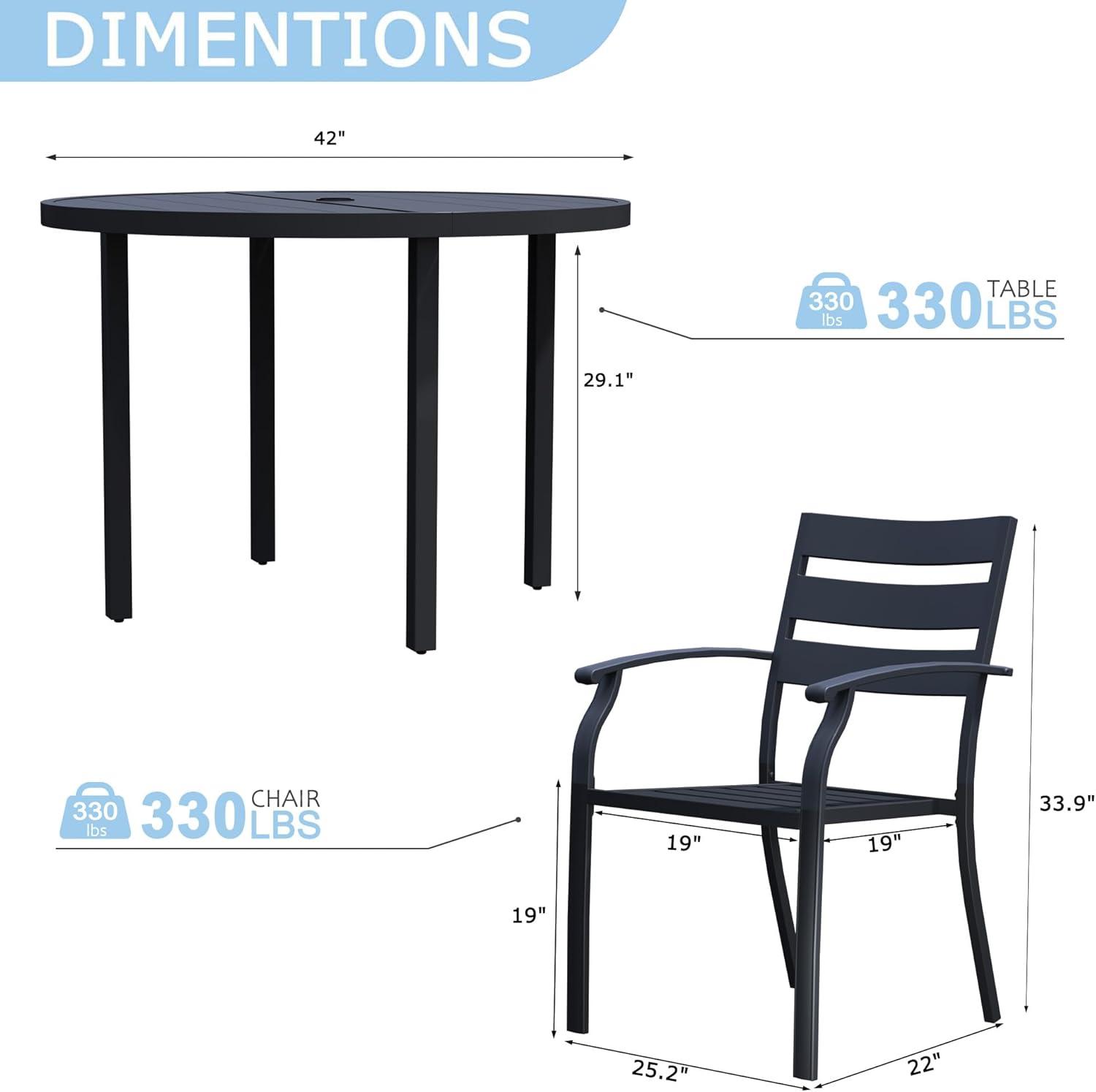 Our experience with this outdoor dining set instantly impressed us with⁤ its sleek and ⁣modern design, perfectly blending functionality with style. The round, slatted tabletop not only allows rainwater to drain quickly but also provides a generous surface area, making it ideal for casual ⁣meals or afternoon drinks. We appreciated the ⁤thoughtful inclusion of an adjustable umbrella hole, ranging from 1.96″ ⁣to 2.76″, which ⁤lets us add ⁤shade protection effortlessly on sunny days-an essential feature‌ for extended outdoor comfort. Every piece ​reflects an attention to detail, from the smooth powder-coated finish ‌to the simple yet elegant ⁢black metal construction.