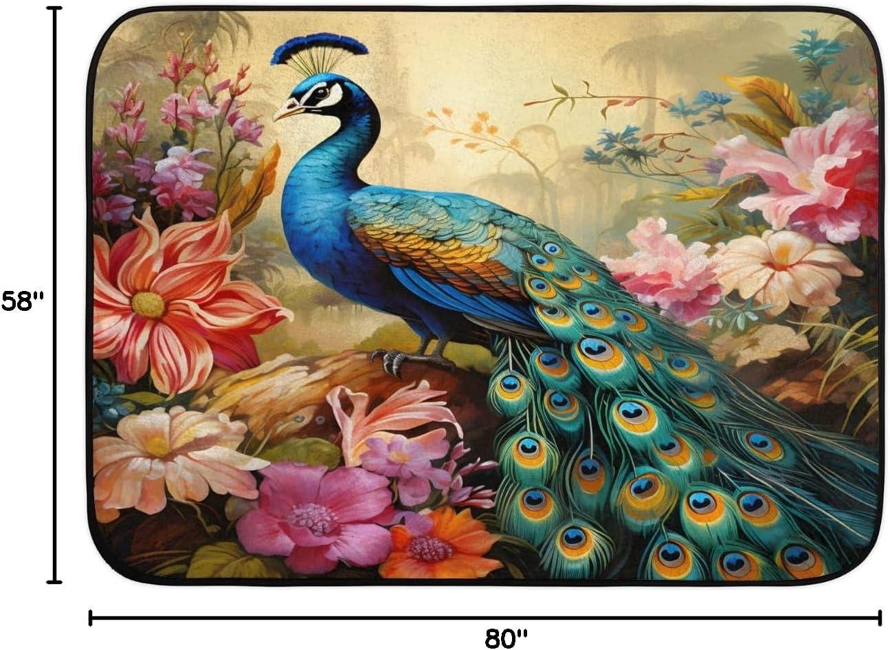 Vibrant, ⁣colorful peacock design adds a unique artistic touch to any room. Large size (58x80in) may not fit ‍smaller entrances or compact spaces well.