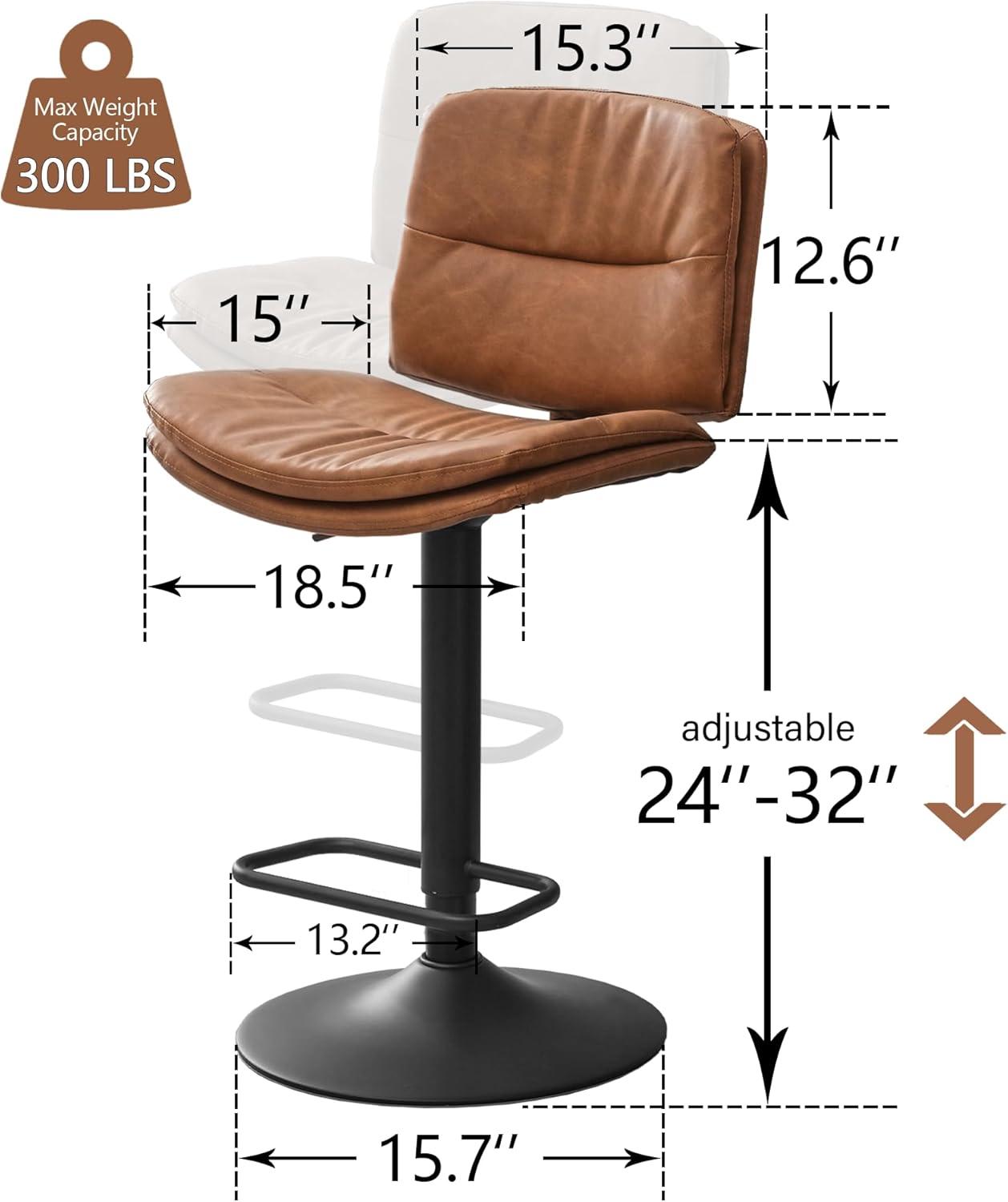 What could be improved is primarily the weight capacity, limited to 280 pounds, which might not suit everyone’s needs. While the construction feels robust, larger users may want to consider this factor before purchasing. Additionally, some users might find the faux leather surface a bit prone to showing wear over time compared to genuine leather options, especially with heavy daily use. Assembly was straightforward, but clearer labeling on screws and parts could speed up the process even more. A small storage hook or additional cushioning options might elevate the overall functionality and comfort further. Aside from these minor points, these stools strike a great balance between elegance, comfort, and durability.