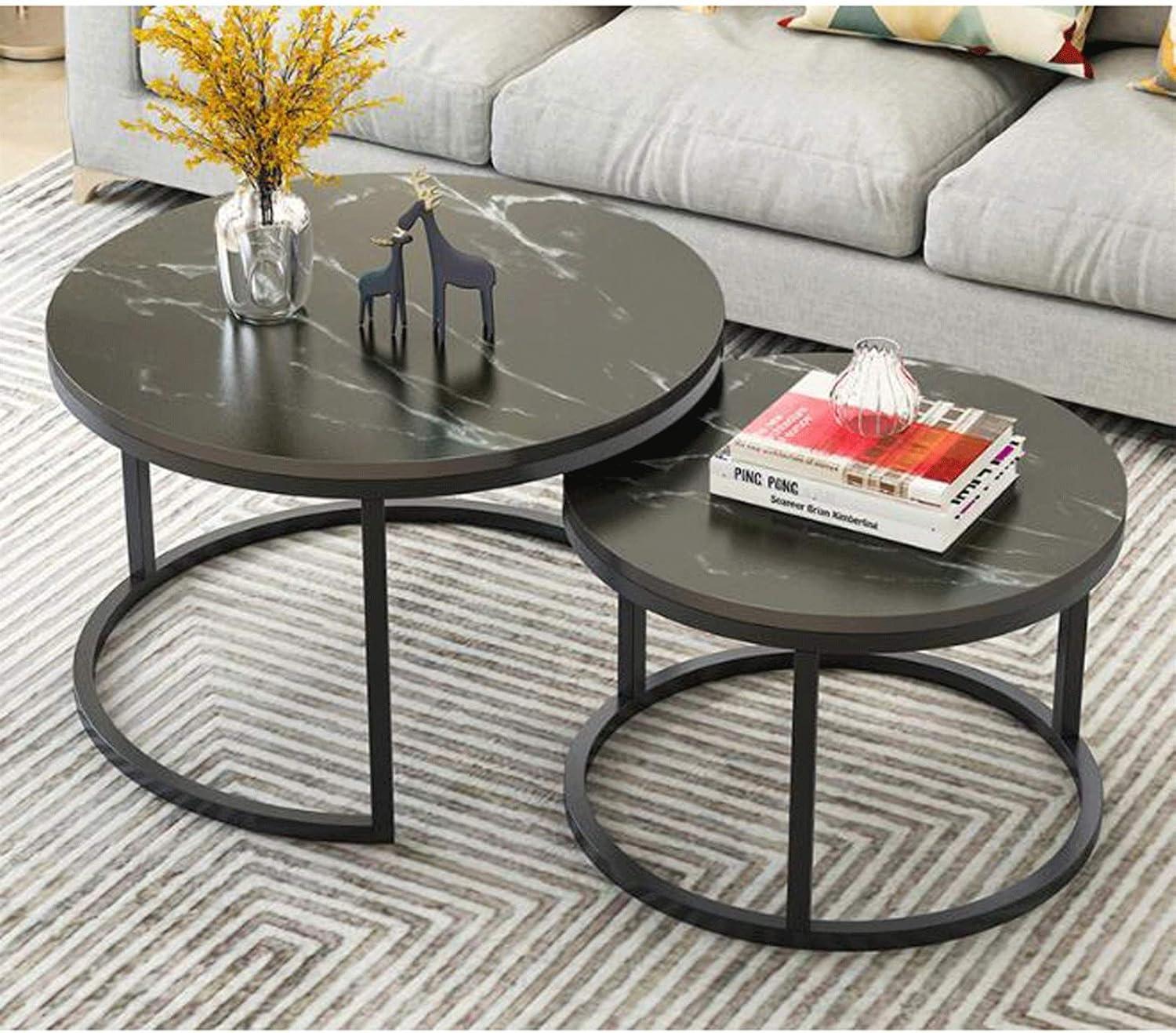 Based on our experience, this combination of two coffee tables offers excellent versatility for various living spaces. The spacious smaller tabletop is ideal for adding decorative touches like small plants or tea sets, enhancing the ambiance with a subtle natural element. The rounded edge banding provides peace of mind,especially for homes with children,as it effectively minimizes injury risks from accidental bumps. Constructed with a stout painted steel frame and an environmentally friendly fiberboard surface, these tables maintain structural stability and durability, resisting deformation even with daily use. Their simple yet fashionable marble-patterned tops bring a touch of elegance without the maintenance concerns of actual marble.