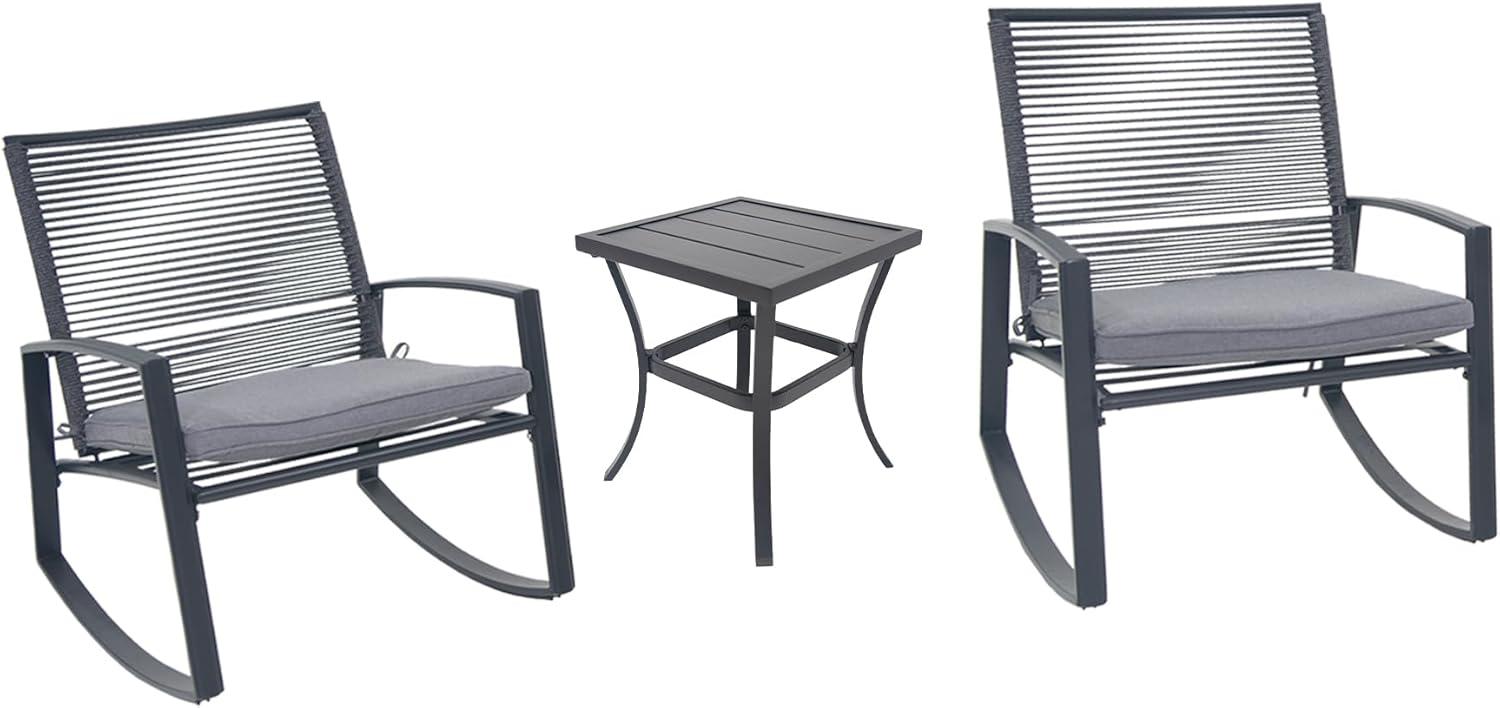 From the moment we unpacked this 2-person rocking conversation set,its sleek grey powder-coated finish instantly impressed us,effortlessly complementing both modern patios and cozy indoor areas. The design balances aesthetics and function with a compact footprint that suits small balconies and living rooms without overcrowding the space.The gentle rocking motion is surprisingly comfortable, supported by sturdy metal frames that feel solid but not cumbersome. The included side table, perfectly proportioned, adds a practical spot for drinks or books, enhancing every relaxed moment. Assembly was refreshingly straightforward,requiring only minimal effort and few parts,which is a big plus for those who want quick setup without the hassle.