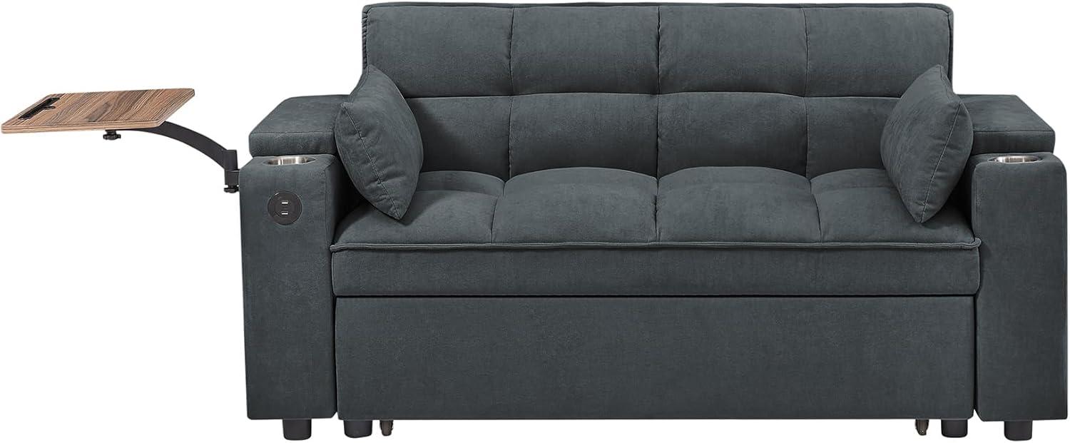 One of the standout features of this loveseat is its incredible versatility. With just a few simple adjustments, it transforms seamlessly between a cozy loveseat perfect for two, a fully reclined lounge ideal for relaxing, and a queen-sized sleeper that can comfortably accommodate overnight guests. The reclining backrest offers customizable comfort, while the 360° rotatable side table combined with built-in cupholders makes it incredibly practical for everyday use. Additionally, the integrated USB ports allow us to stay connected and charge devices without searching for outlets, enhancing the multifunctional nature of this piece.
