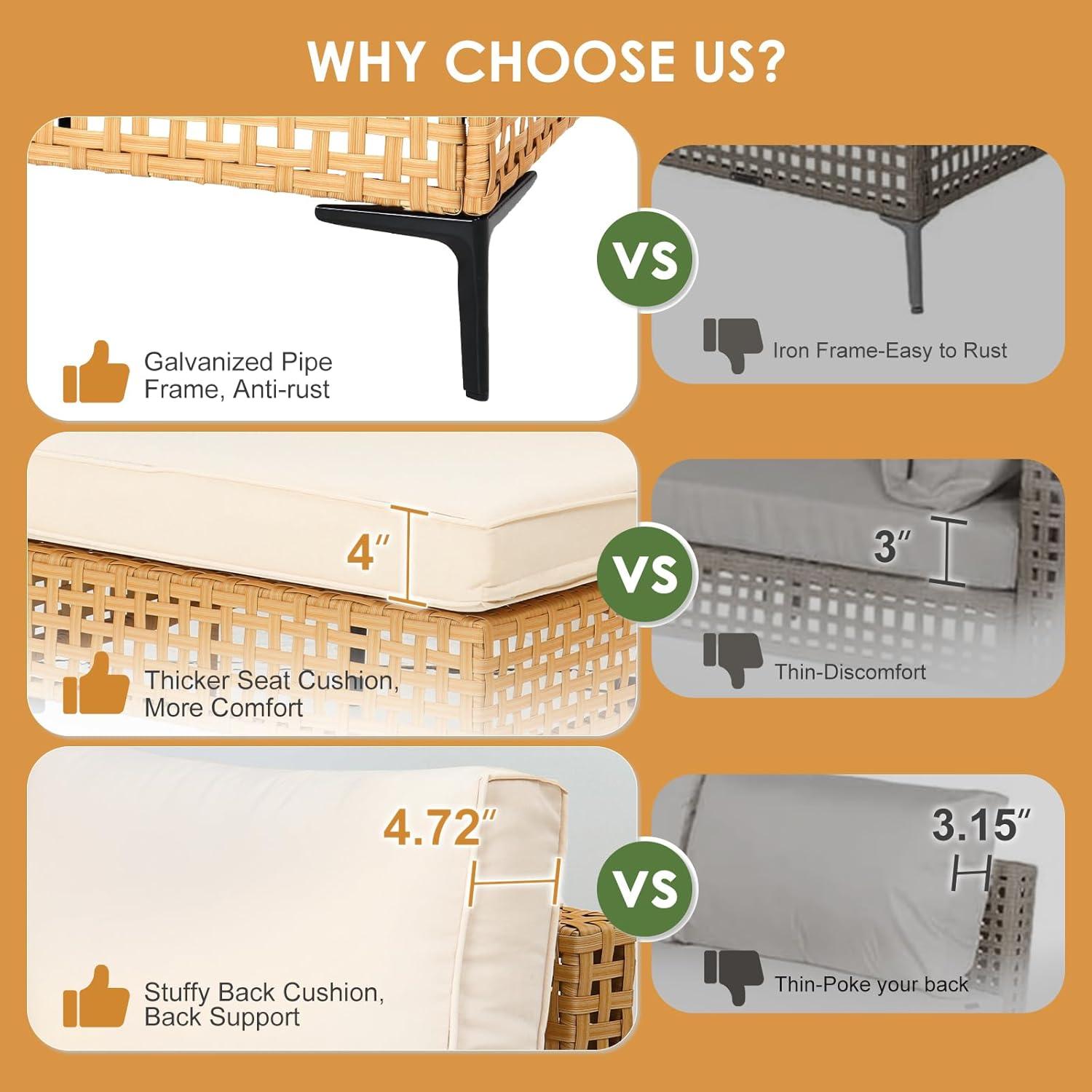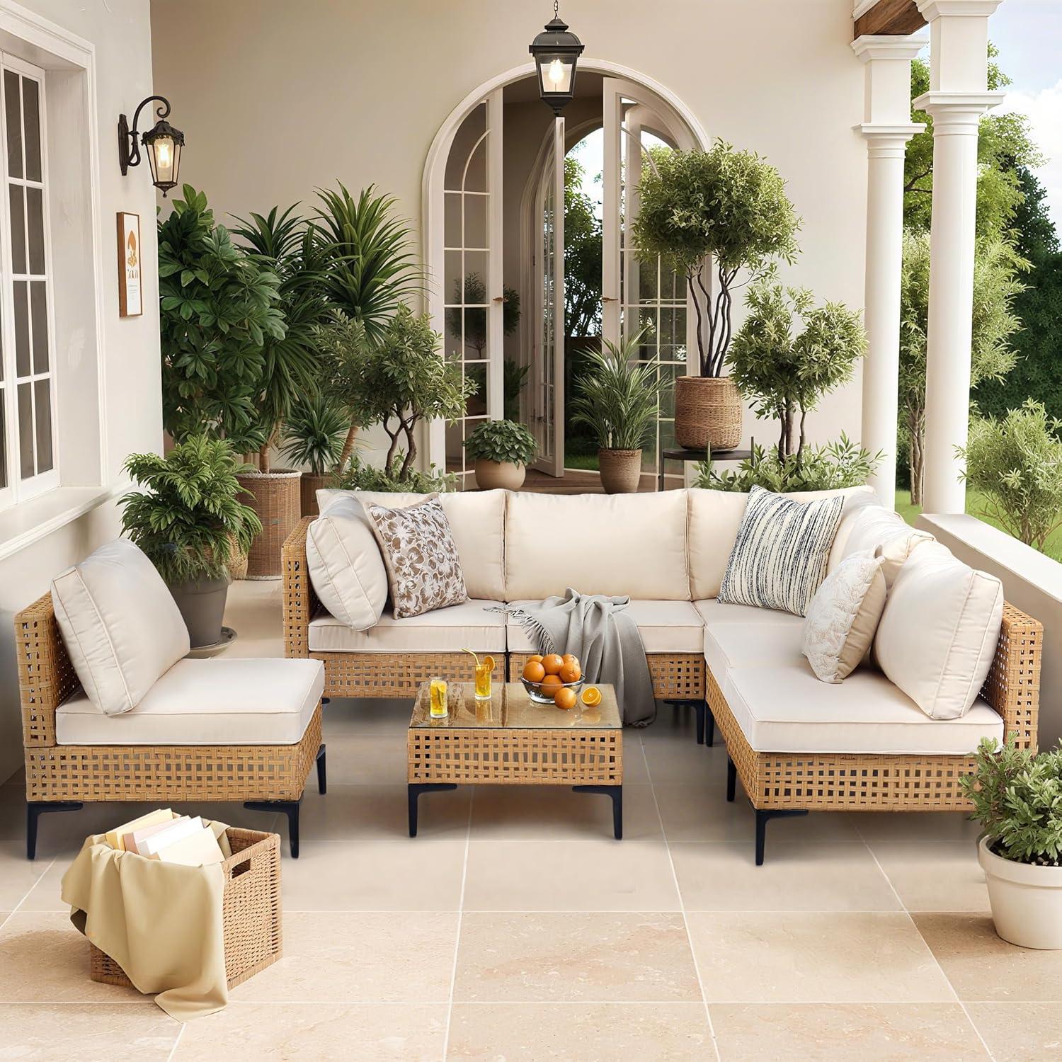 Our​ experience‍ with ‌this patio furniture set has been ‍genuinely ⁤satisfying from the start. The modular ​sectional design allowed us⁢ to arrange the ⁣7 pieces-2 corner chairs, 4 armless chairs, and a glass-top coffee table-to⁣ perfectly fit⁣ our backyard’s layout. Each component felt sturdy, thanks to ‍the heavy-duty steel frame and premium wicker that promises durability against weather‍ challenges. The beige cushions, crafted with PU-coated polyester fabric, offered ⁤excellent UV protection and resisted stains‍ and moisture remarkably well. Sitting on the 4-inch thick ‌cushions provided us with remarkable comfort and support during long lounging sessions,⁤ and the removable design made cleaning ⁢a breeze.