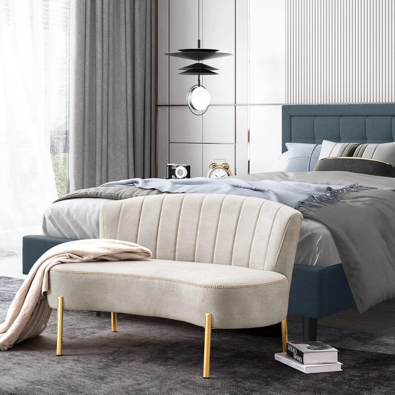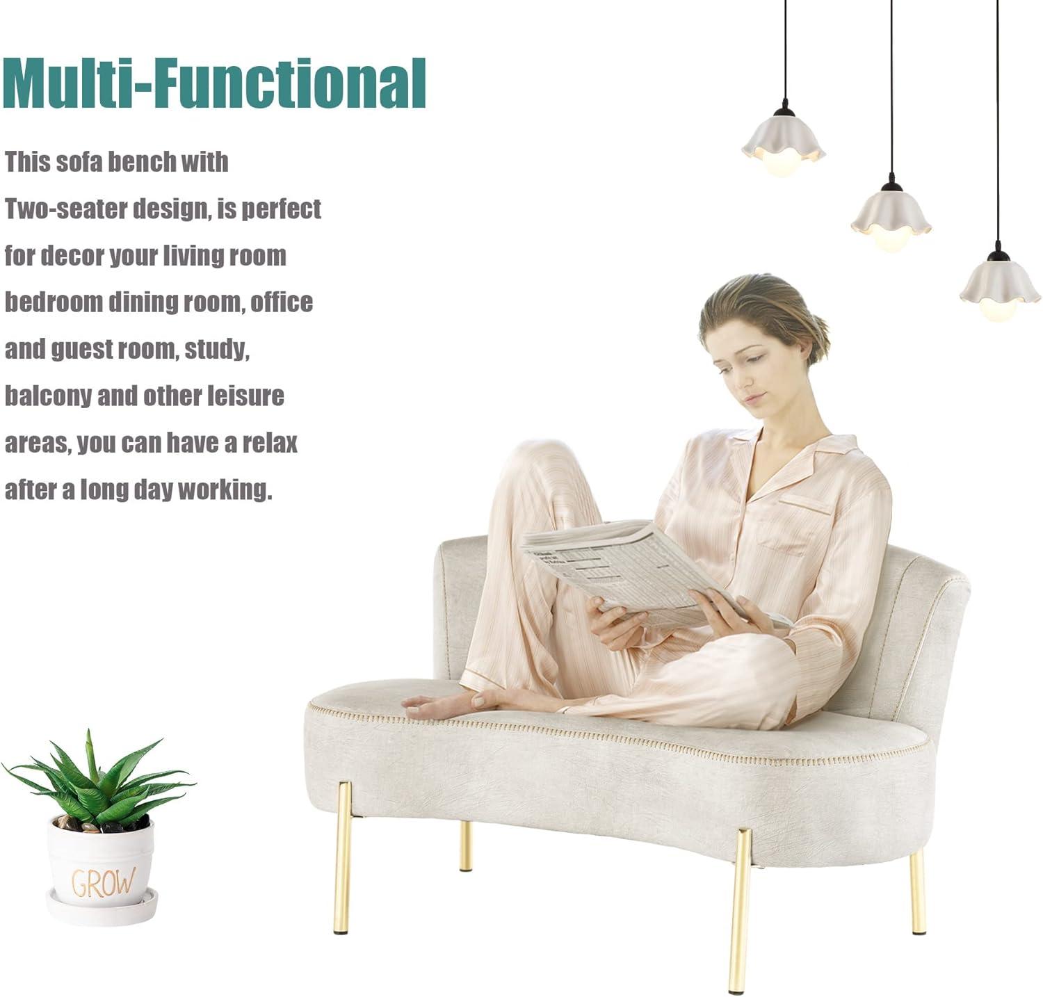 the golden metal legs provide both visual charm and reliable support that complements the soft padded upholstery perfectly. For those seeking a sturdy yet stylish bench for smaller spaces, this loveseat’s foundation will not disappoint.
