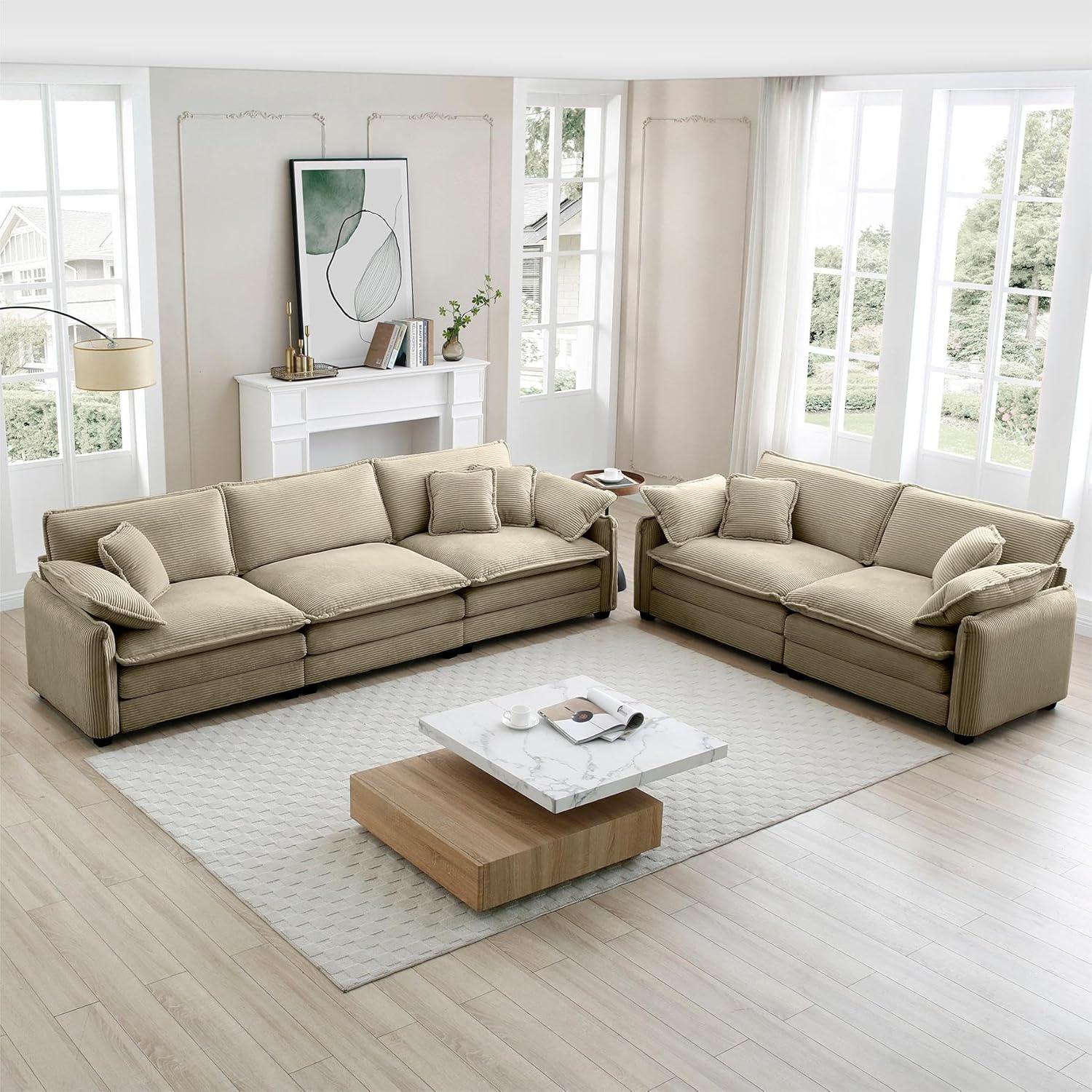 Ready to experience the cloud-like comfort for yourself? Check it out here: Shop‍ the​ Aoowow Modular Camel Corduroy Sofa Set