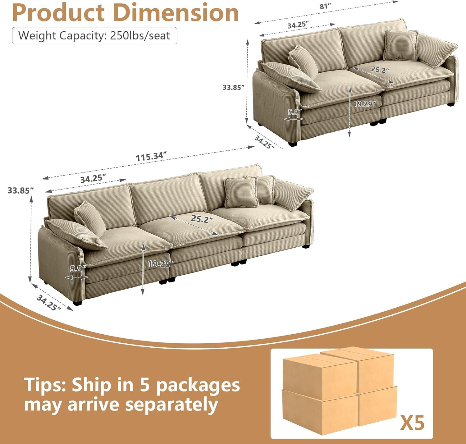 Right out of⁣ the box, this⁣ sectional sofa set ‍impresses with its modern corduroy upholstery in a warm camel tone that brings‌ a cozy yet stylish vibe to‌ our living‌ space. The modular design promptly caught‌ our attention, ⁣offering a‍ flexibility that‌ fits perfectly with⁢ varying ⁢room ⁤layouts – from a classic loveseat arrangement to a spacious​ L-shaped setup.‍ The​ deep, oversized seats buffered with high-density foam felt incredibly inviting,​ wrapping ⁤us in⁤ cloud-like comfort the moment we settled in. ​The inclusion⁣ of removable throw pillows and ⁤arm pillows adds an extra layer of tailored support, making ⁤long lounging sessions truly enjoyable without sacrificing aesthetics.