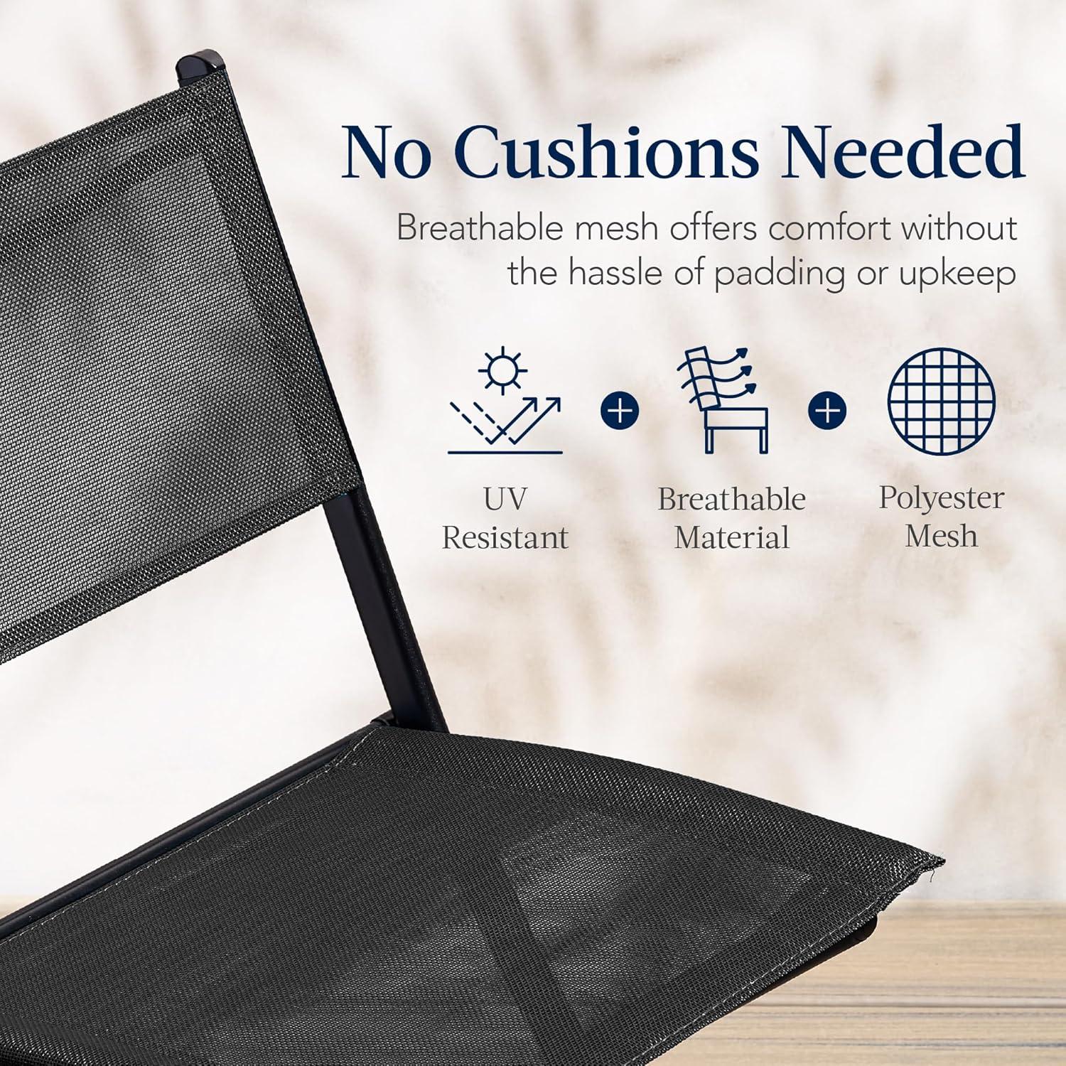 When it comes to comfort, these folding chairs impress with their breathable polyester mesh fabric that feels gentle against the skin, even during warmer days. The high-quality material allows airflow, reducing sweat and discomfort while seated. Each chair supports up to 265 pounds, giving us confidence in their sturdiness without sacrificing softness. The slightly contoured seat and back promote a relaxing posture, making our patio moments more enjoyable. Plus, the lightweight design means we can effortlessly move them around or fold them away, adding convenience without compromising on comfort.