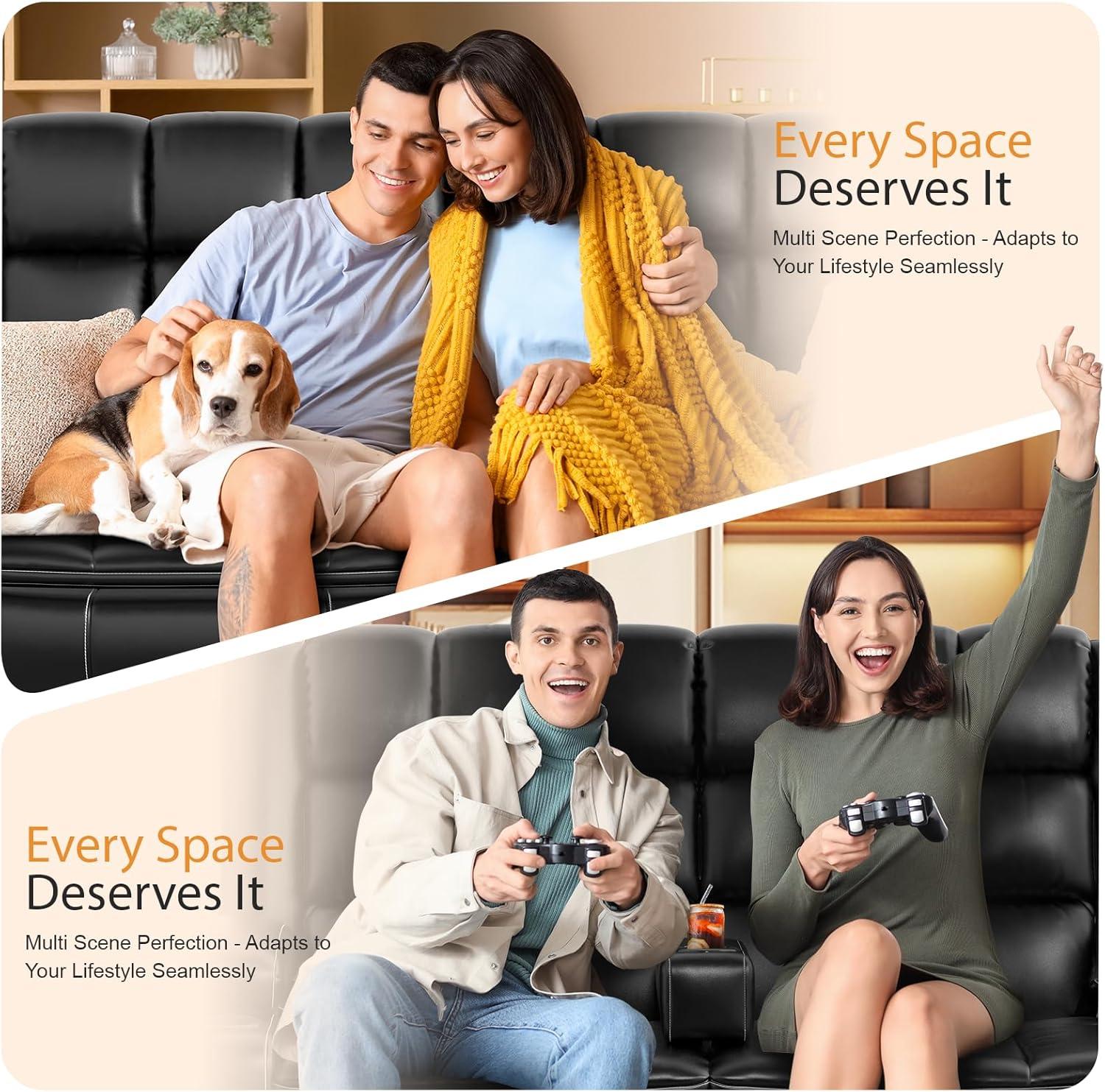 Our experience with this reclining loveseat reveals a thoughtful blend of comfort and modern design. The double-layer cushion adds a plush softness that cushions us perfectly, eliminating any sense of firmness from the sofa’s frame. Its ergonomic 7-zone support system cradles the body gently, easing tension and backaches even after extended lounging sessions. The skin-friendly PU leather upholstery not only looks sleek in its black finish but also offers a scratch-resistant, solvent-free surface that’s easy to keep clean. Whether we’re indulging in a quiet movie night or a lazy weekend,the loveseat adapts seamlessly to our comfort needs.