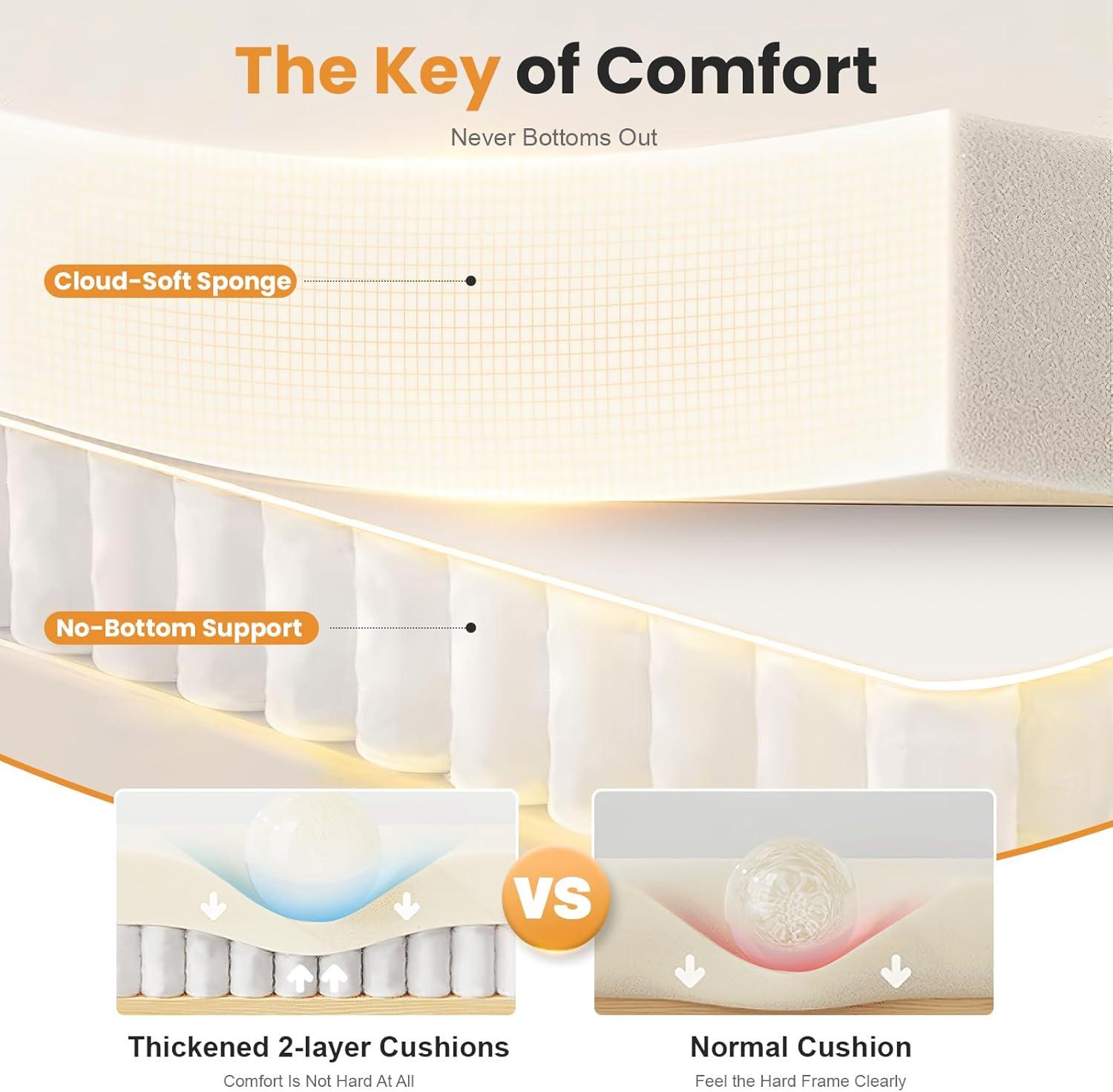 | Extra 2-inch Layer | Enhanced softness, no hard frame feel |