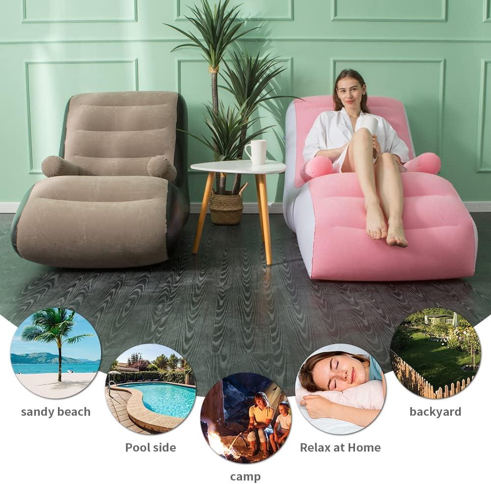 Comfort is truly where this lounge chair shines.Its ergonomic design with smooth,tight seams gracefully cradles the body,providing a natural support that feels just right whether sitting upright or reclining for a restful nap. The soft flocked surface coupled with sturdy PVC material not only offers a plush touch but also stands up well against everyday wear, ensuring durability without sacrificing coziness. The built-in handrails add a sense of security and stability, enhancing the overall relaxation experience. Plus, its lightweight nature means we can easily move it from indoors to outdoors, making it perfect for any chill-out spot.