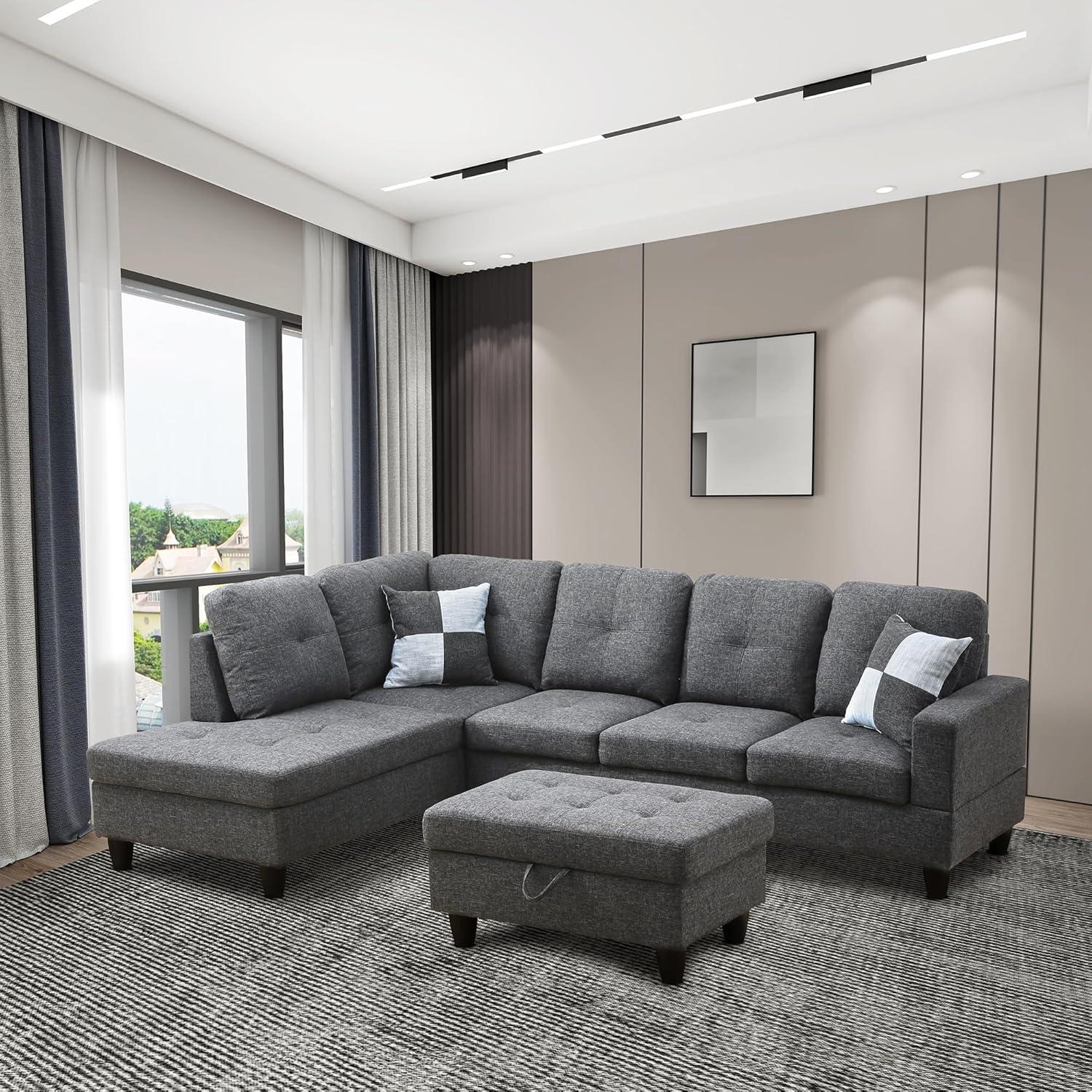 From the moment we unpacked this sectional, ‌the blend of style and functionality stood out immediately. The linen upholstery⁤ showcases a ‍sleek black-grey tone that complements⁣ modern living spaces effortlessly,⁤ while⁢ its durable, wear-resistant, ​and waterproof​ nature ‌promises longevity even in busy⁣ households. The thoughtful design includes a ⁣storage ottoman, perfect​ for stashing away ​blankets,‌ toys, or everyday essentials, which⁤ adds a ​layer‌ of ‍practicality‍ seldom ⁢found in standard living room furniture.​ Assembly was straightforward, with sturdy connectors ensuring everything fits snugly and securely without feeling flimsy.
