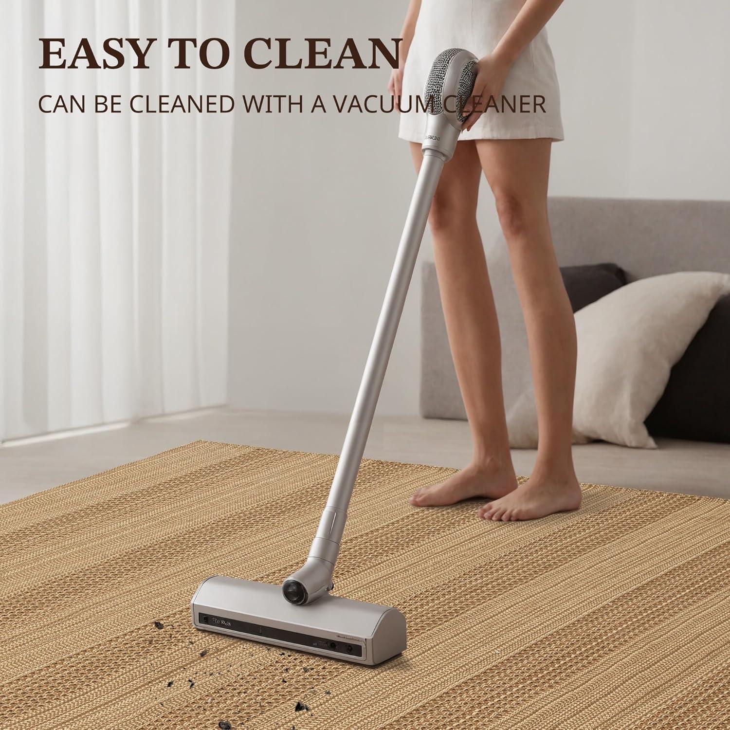 Functionality meets elegance with this durable piece. Its robust woven construction holds up remarkably well under frequent foot traffic, making it perfect for outdoor use all year round.We appreciate how easy it is to care for-regular vacuuming or shaking keeps dirt at bay, and machine washing on a delicate cycle refreshes the mat without hassle. This blend of practicality and tasteful design has truly refined our entryway ambiance by combining effortless upkeep with undeniable visual appeal.