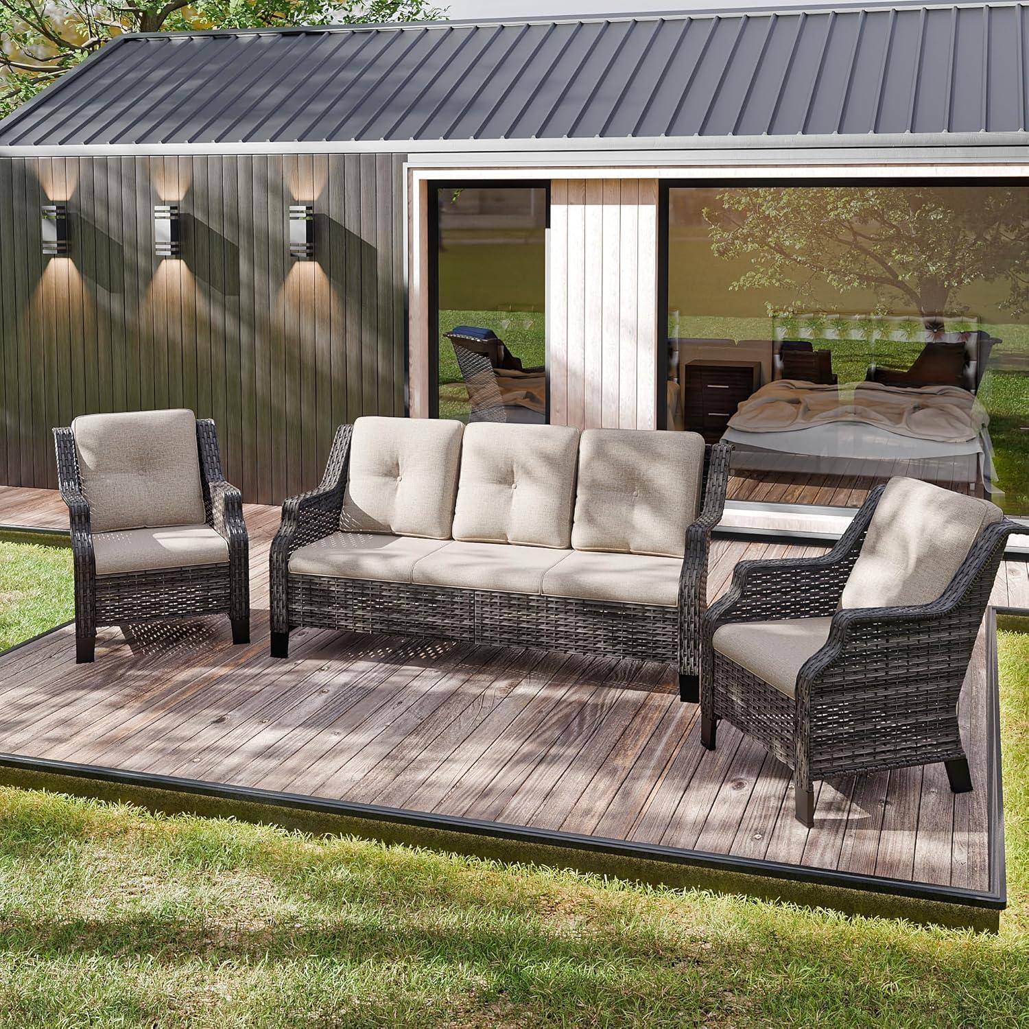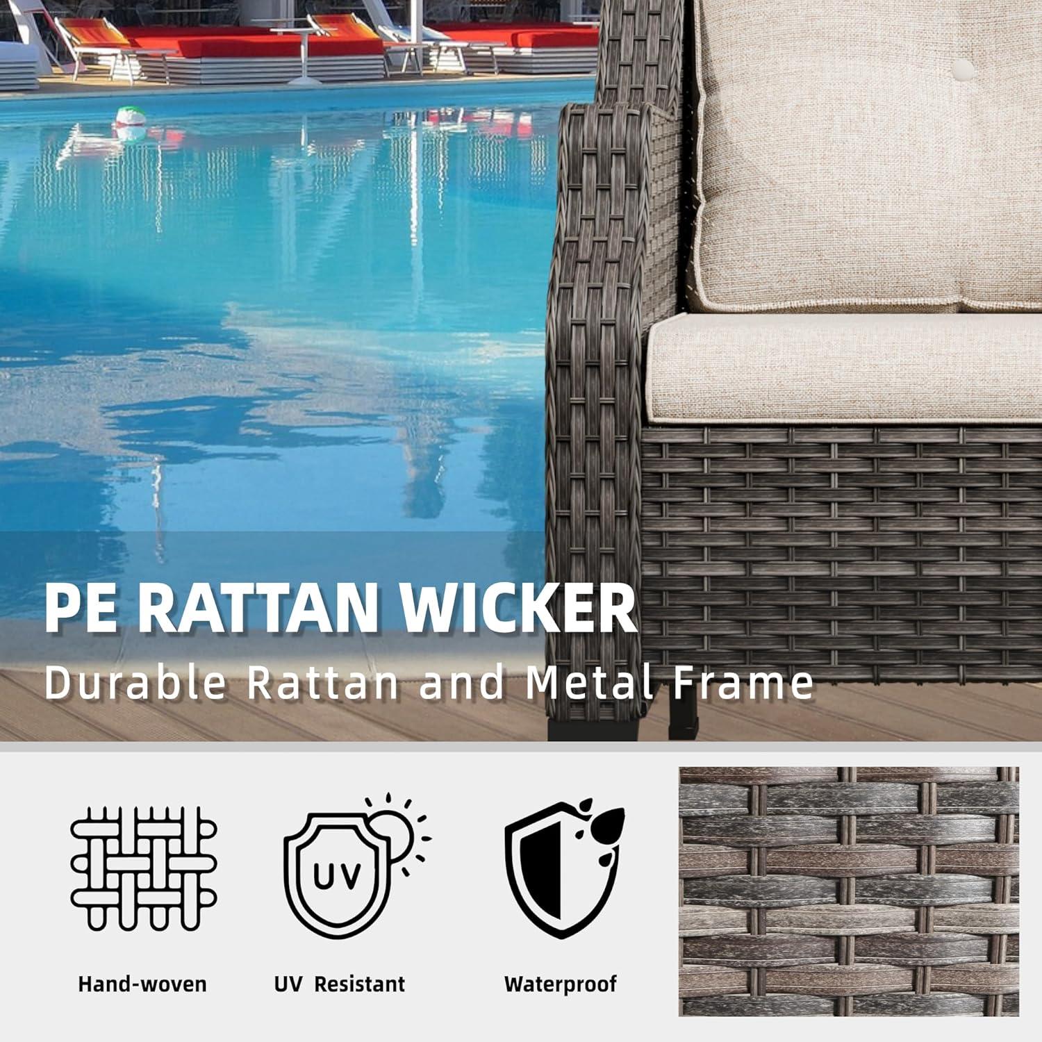 | Weather-Resistant Materials: Olefin cushions are splash-resistant and the wicker won’t fade easily. | Limited Color Options: Only available in beige, which might not suit all decor styles. |
