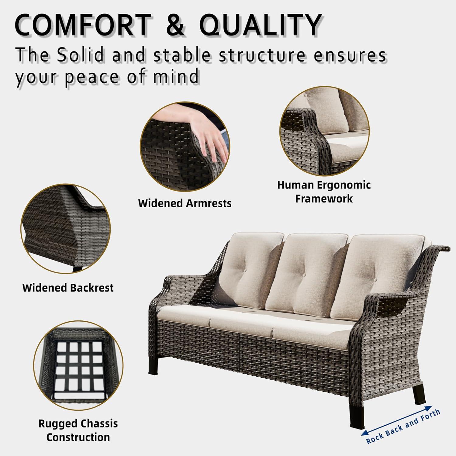 Our experience with the 3-seater couch highlights its blend of thoughtful ergonomics and inviting comfort. The high backrest is designed to support us perfectly, encouraging long, relaxed seating sessions whether reading a book or enjoying garden views.The wide armrests add an extra layer of coziness, making it feel less like outdoor furniture and more like an extension of our living space.The thick,plush cushions wrapped in durable olefin fabric offer softness without compromising resilience,thanks to their splash-resistant properties. This means we can unwind peacefully, knowing the cushions will stay fresh despite outdoor exposure.