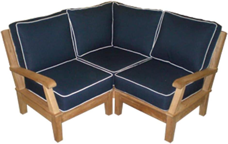 | Style | Elegant, natural teak finish blending with navy cushions |