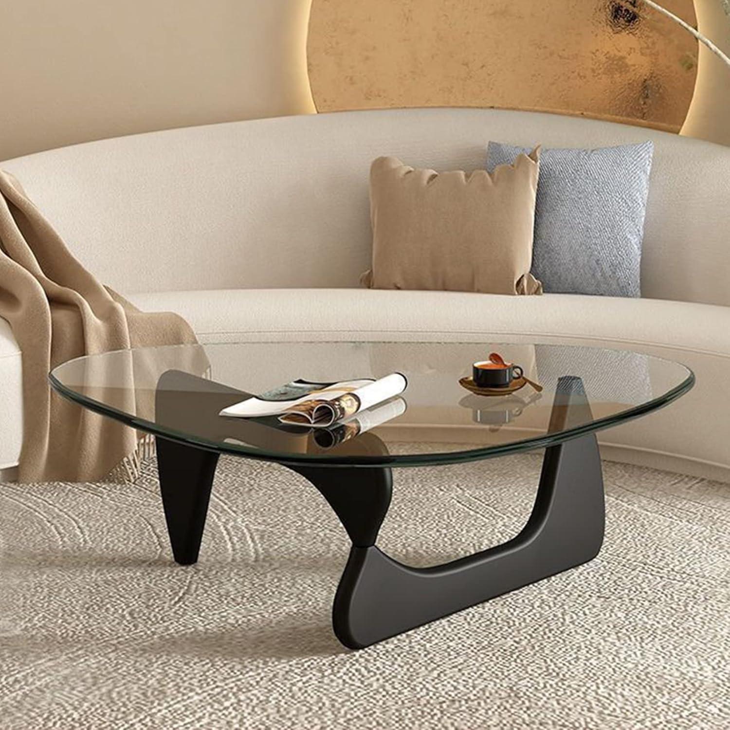 Striking mid-century modern aesthetic with a sleek triangular design that adds a fresh visual punch to any living space. | The tempered glass top, while visually appealing, feels somewhat thin, which may cause concern for durability and accidental damage. |