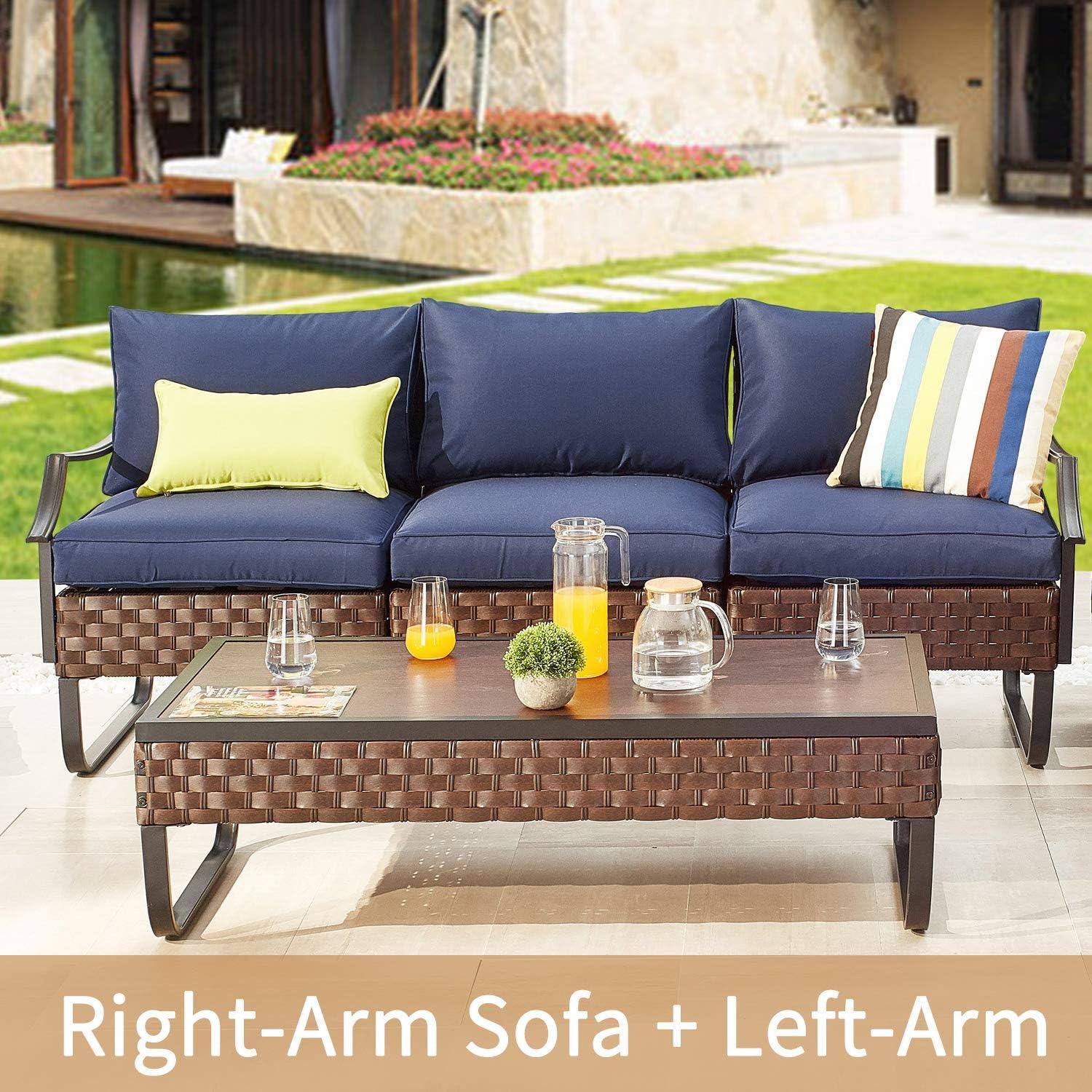 - Durability and Weather Resistance: Made from durable PE rattan wicker and a high-quality steel frame, the furniture set is built for stability and balance. The All-Weather wicker and Anti-Rust steel frame ensure the set's durability, while the breathable 250G polyester fabric is Anti-UV, water repellent, and resistant to stains.