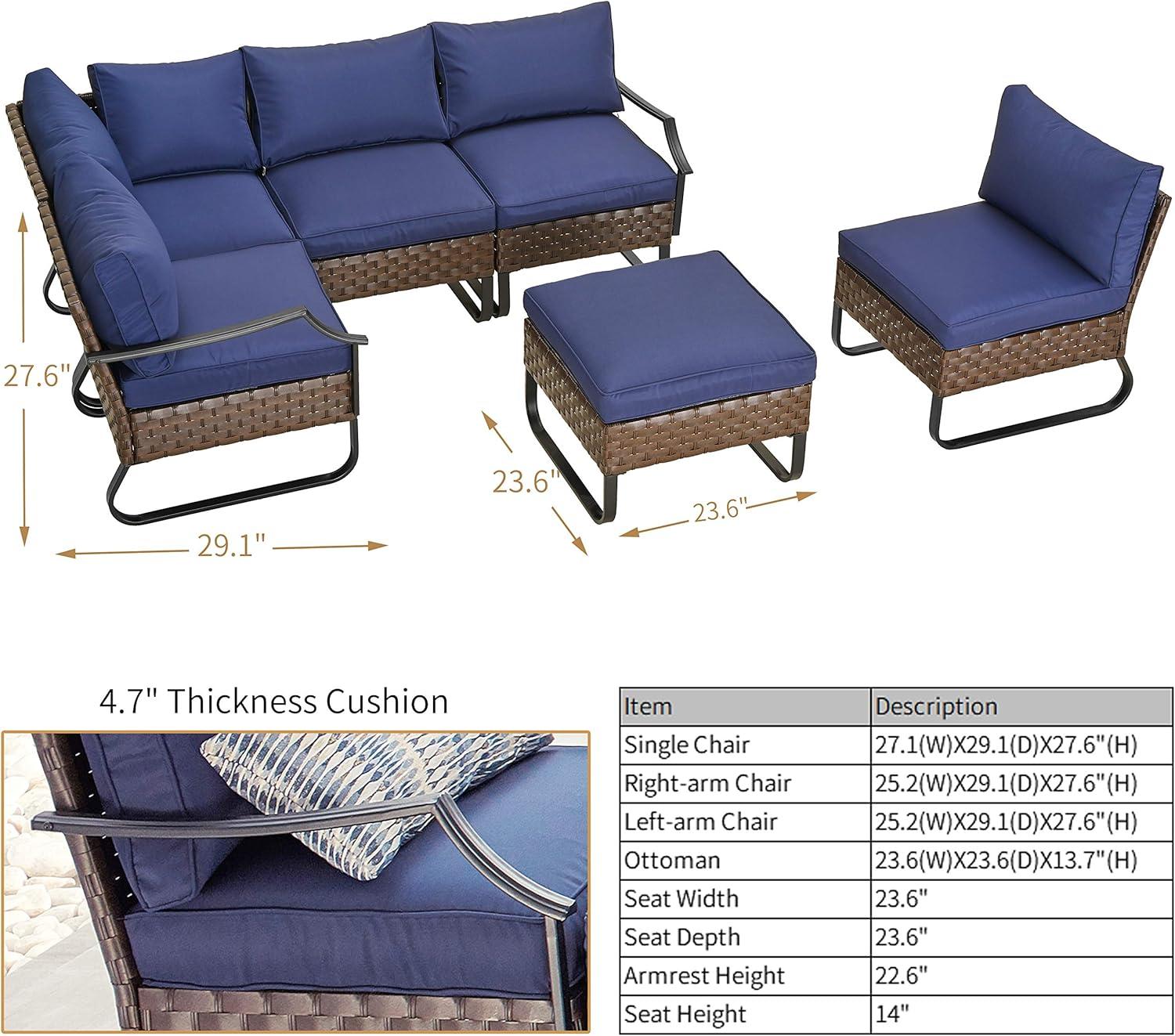 The thoughtful design truly elevates our outdoor entertaining experience. The modular setup offers incredible flexibility, allowing us to rearrange the six pieces into various configurations-from a full sectional to cozy loveseats or an open couch. This adaptability means we can tailor our seating arrangements depending on our guest count or the mood of the gathering. Each seat boasts a wide, deep surface paired with thick cushions-over 5 inches in the seat and nearly 5 inches in the back-that offer plush comfort while maintaining shape and support. Plus, the cushions’ stain-resistant fabric means no worries about spills or unexpected weather, keeping our space neat and inviting with minimal upkeep.