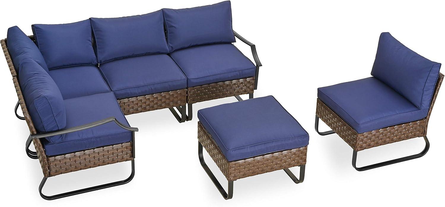 Durability doesn’t take a backseat here-the hand-woven wicker and corrosion-resistant frame are built to brave various weather conditions, standing strong through sun, rain, or wind. Its modular design allows us to arrange the six pieces, including armless chairs, corner sofa, and an ottoman, into at least four distinct configurations, adapting seamlessly to different outdoor spaces and occasions. The sleek modern aesthetic enhances any patio, balcony, or poolside setup, making it not just functional but stylish as well. Assembly was straightforward with all hardware and instructions included,though decorative pillows need to be sourced separately.