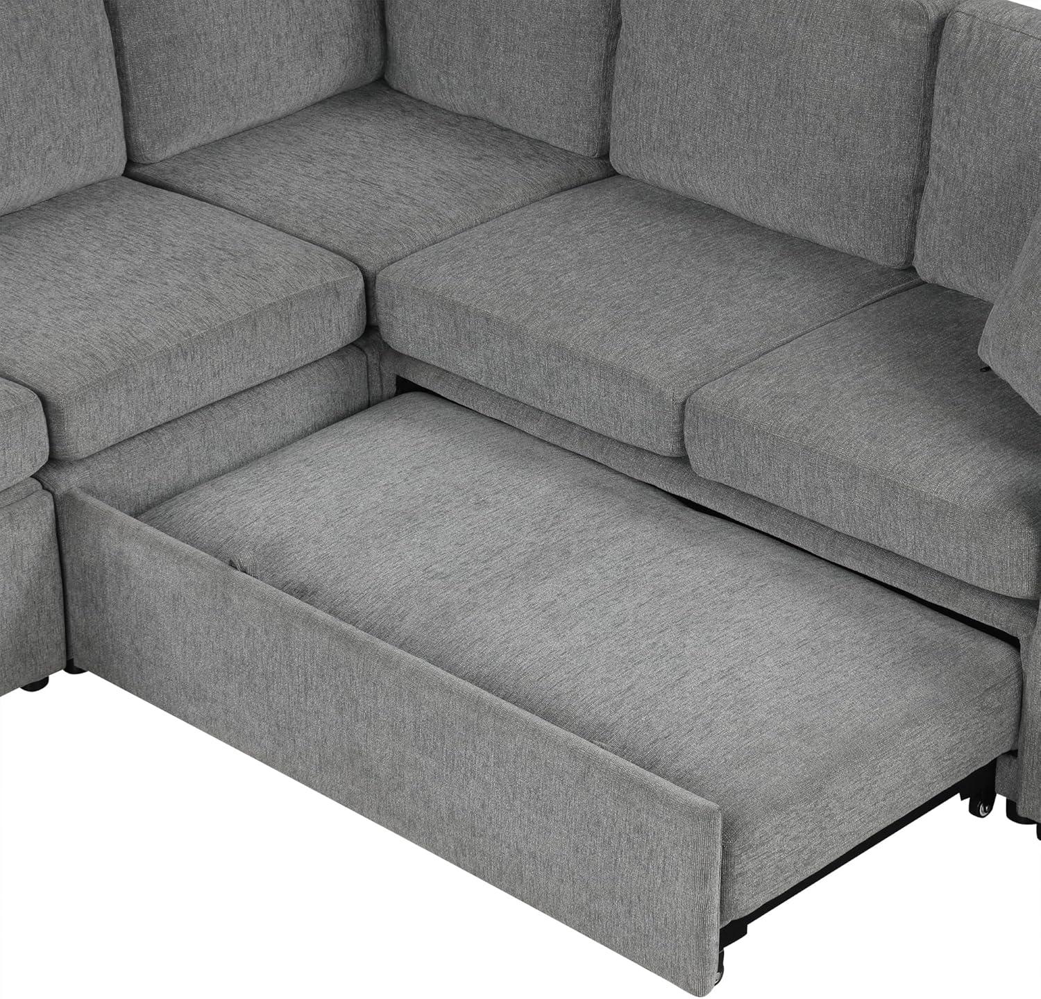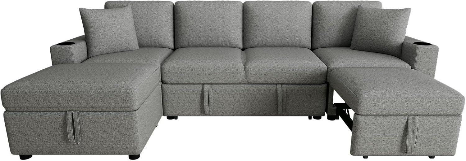 After spending significant time with this sectional sofa, we appreciate how its modular design genuinely adapts to different living spaces, allowing us to switch effortlessly between U-shaped and L-shaped configurations. The included movable ottoman with hidden storage has been a game-changer for keeping our living area clutter-free, perfect for stashing blankets and books. The plush gray chenille upholstery not only feels inviting but also adds a modern elegance that complements any interior. comfort-wise,the combination of pocket spring cushions and foam strikes a nice balance between softness and support,making extended lounging and sleeping equally pleasant. Plus, the thoughtful inclusion of dual cup holders and USB ports on each armrest has elevated convenience, keeping essentials within easy reach without compromising style.