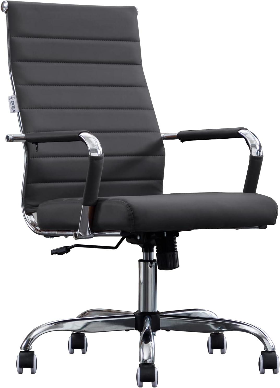 From the moment we set eyes on this sleek office chair, its modern ribbed leather design caught our attention. The minimalist aesthetic paired with classic black leather creates a sophisticated vibe that fits effortlessly into any workspace-be it a home office, conference room, or reception area. The chair doesn’t just impress visually; the high back with its S-shaped cushioned contour and built-in lumbar support instantly hint at thoughtful ergonomics designed for long hours of comfortable sitting.
